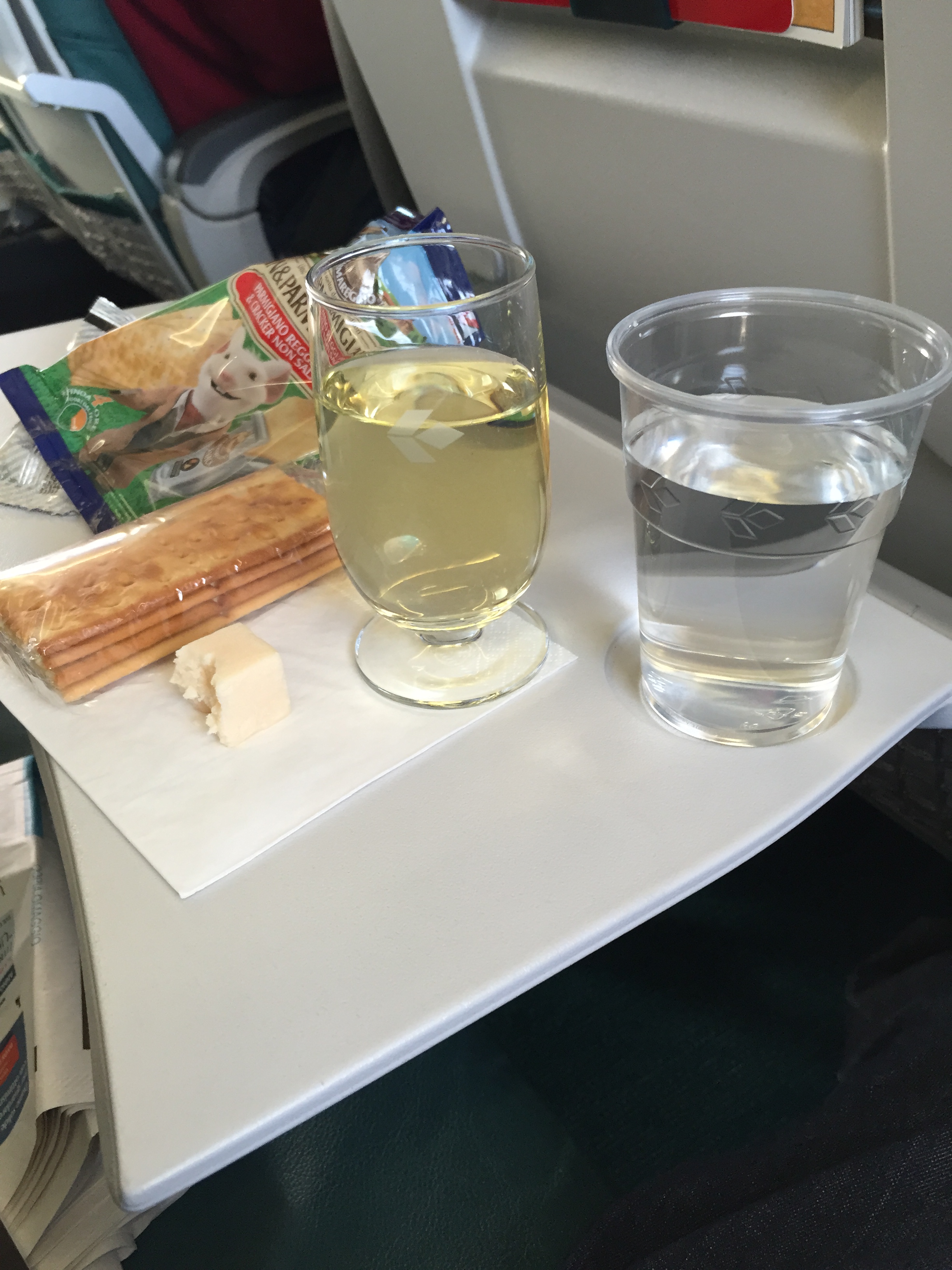 Vini italiani accompagneranno questo spuntino italiano che abbiamo già descritto e che incontra il favore di molti passeggeri. Il Parmigiano è sempre un biglietto da visita senza eguali.