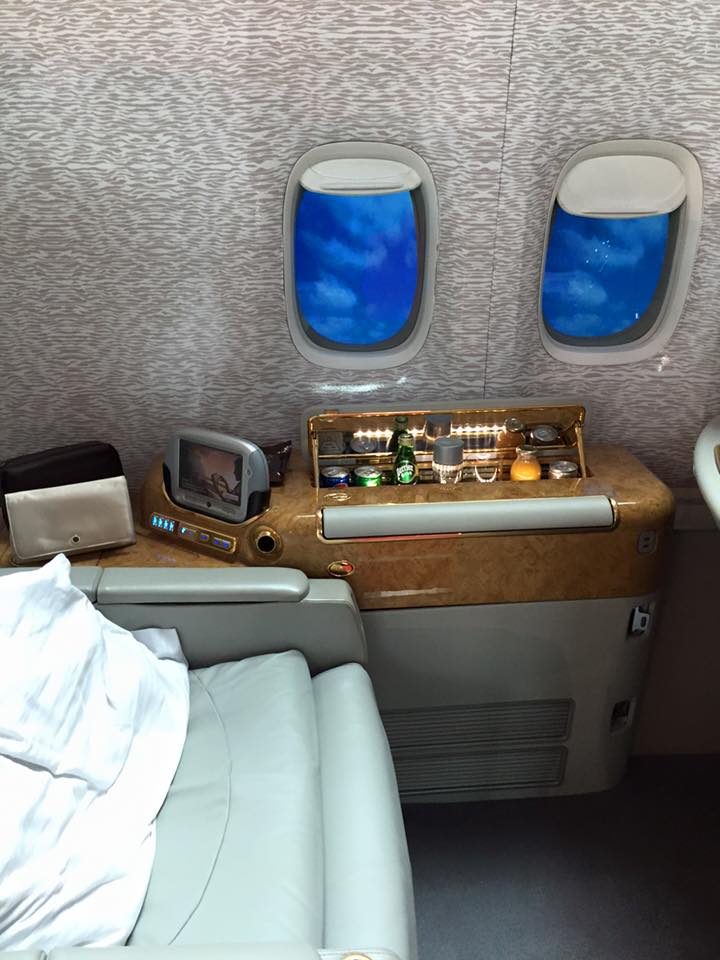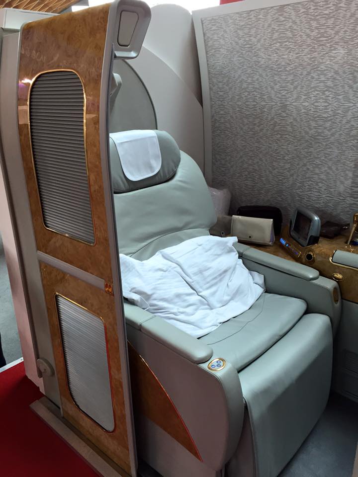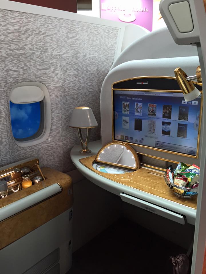 Tra le highlights del TTG c’era anche la First Class Suite di Emirates. Singola lato finestino, le due centrali possono essere honeymoon comunicanti per moglie o marito, compagna e compagno.