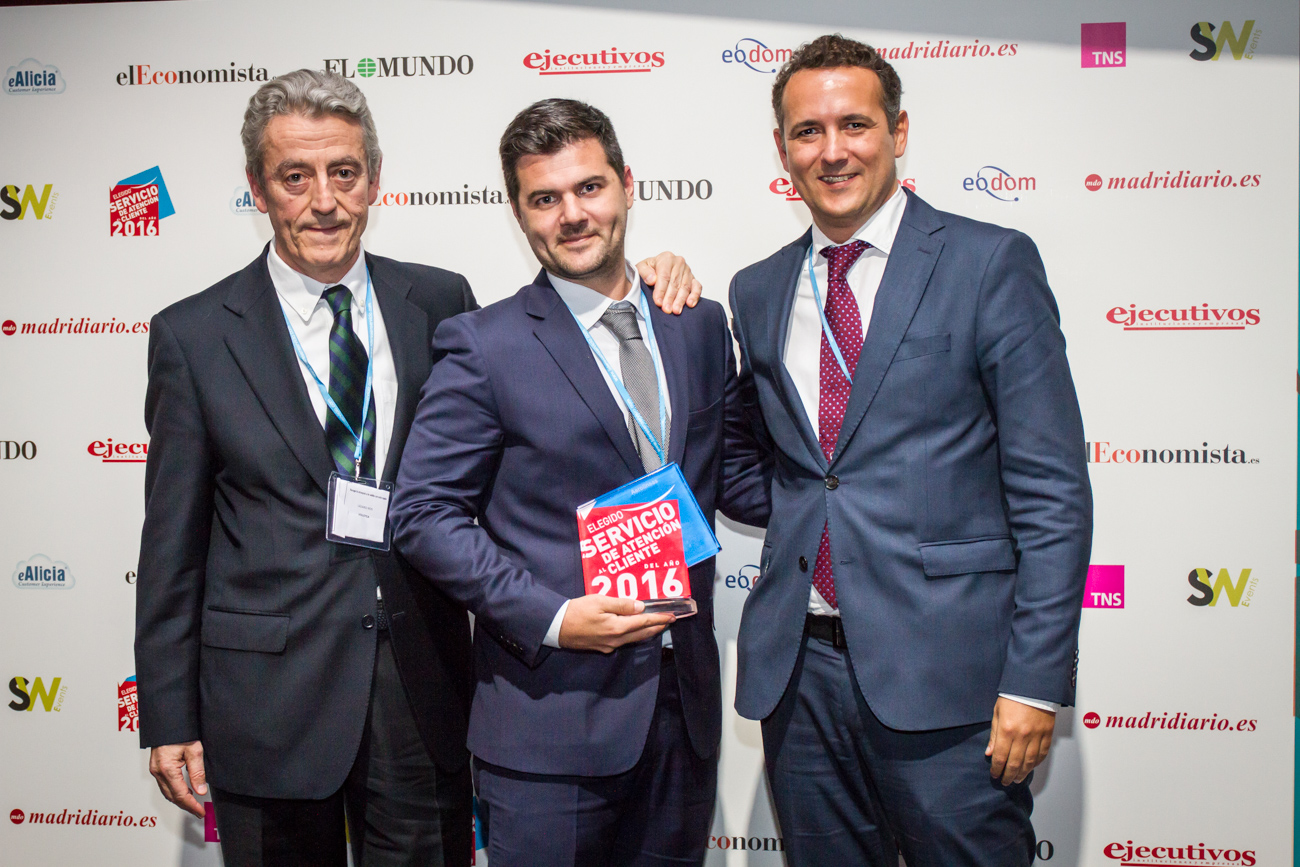 Venezia, 23 ottobre 2015 – Volotea, la compagnia aerea che collega località di medie e piccole dimensioni, si aggiudica il premio per il Miglior Servizio Clienti 2016 (Best Customer Service of the Year) nella categoria “compagnie aeree”. A ritirare il riconoscimento Lázaro Ros, General Manager e Co-Fondatore di Volotea, Álex de Jesús, Chief Information Officer della low cost e Sergi Méndez, Customer Care Manager di Volotea, durante una speciale cerimonia svoltasi a Madrid.