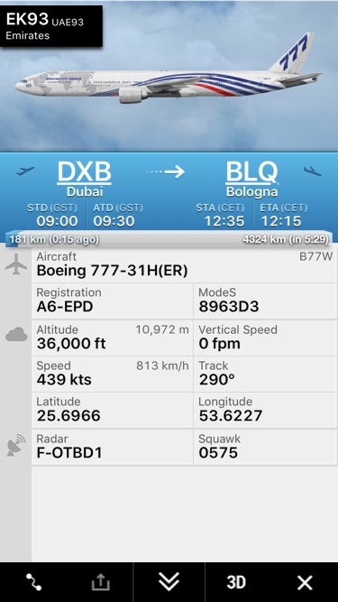 L’aeromobile, le nostre fonti sono attendibili, gia’ comunicato ieri sera e’ il piu’ giovane della flotta B777-300, il 136esimo e cioè A6-EPD.