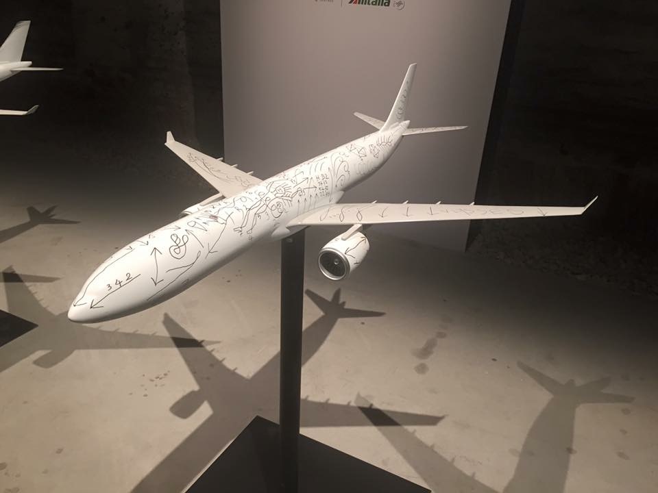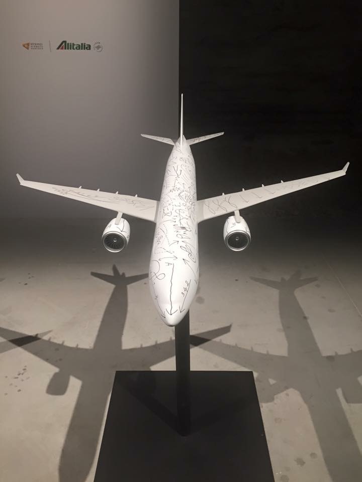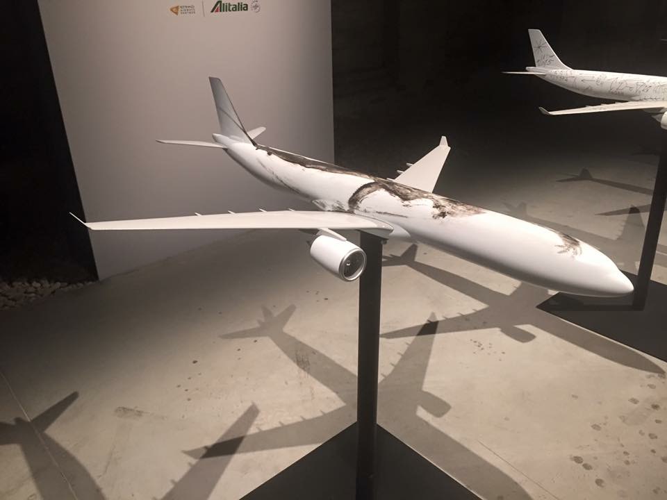 La mostra curata da Vincenzo Trione unisce svariati allestimenti. Questi aerei sono parte della mostra e sono stati pensati in un concetto d’arte immaginandola su questi aerei.