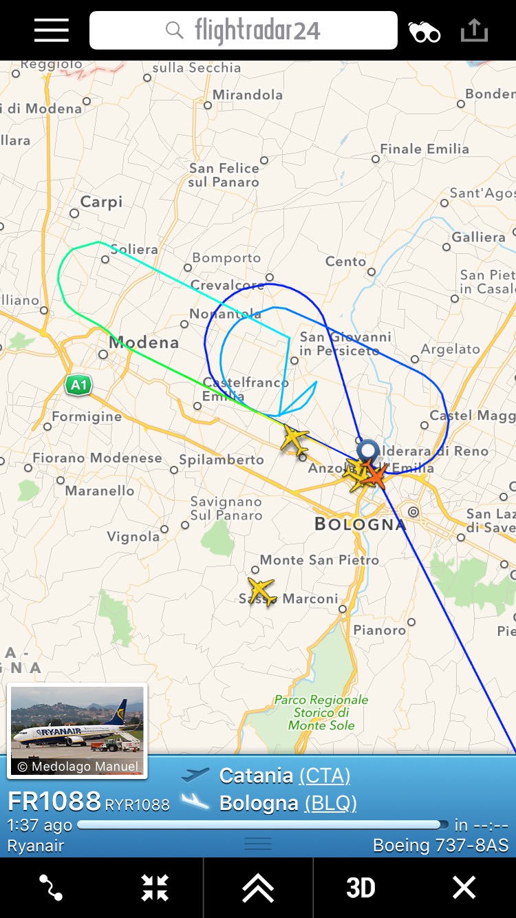 Ecco una riattaccata effettuata da un volo Ryanair, la 1088 da Catania.