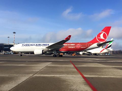 Questa mattina questo special color della Turkish airlines è apparso a Milano Malpensa sul consueto volo da Istanbul. L’aereo è il A330-200 TC-JIZ Invest in turkey. Grazie a Gabriele Re Cecconi per l’immagine.