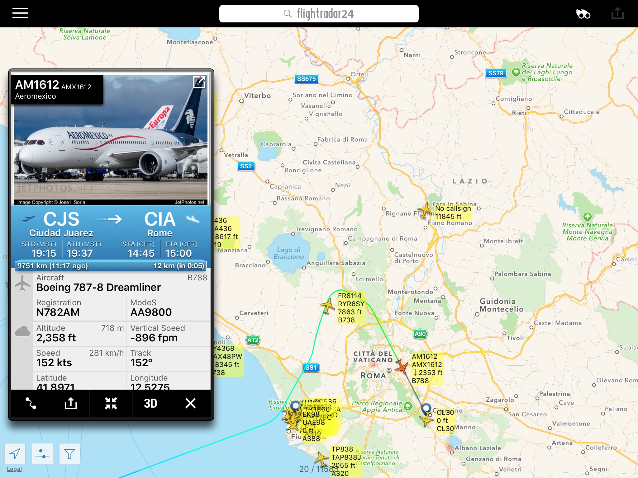 Il Santo Padre Papà Francesco ha da poco sorvolato il centro di Roma in avvicinamento a Roma Ciampino con il volo Aeromexico 1612 operato da un Boeing 787-8 Dreamliner che ha operato l’ultima tratta transatlantica partendo da Ciudad Juarez.