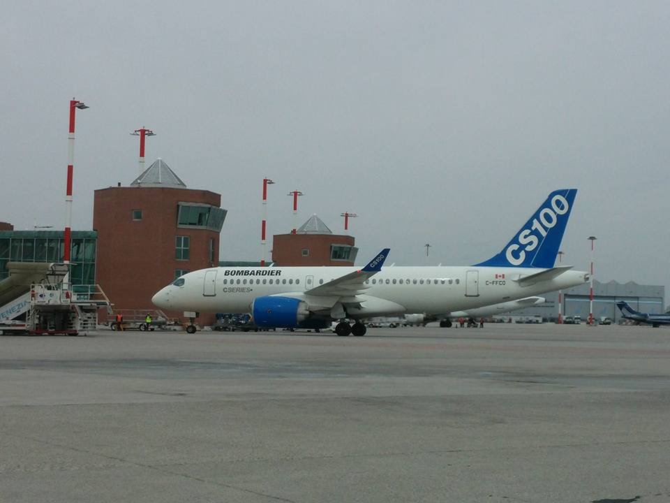 Giornata piena quella di ieri per il dimostratore del Bombardier CS100 che dopo aver toccato Milano Malpensa e’ proseguito anche per Venezia. Qui visibile l’aereo nelle immagini di Delta Charlie che ringraziamo.