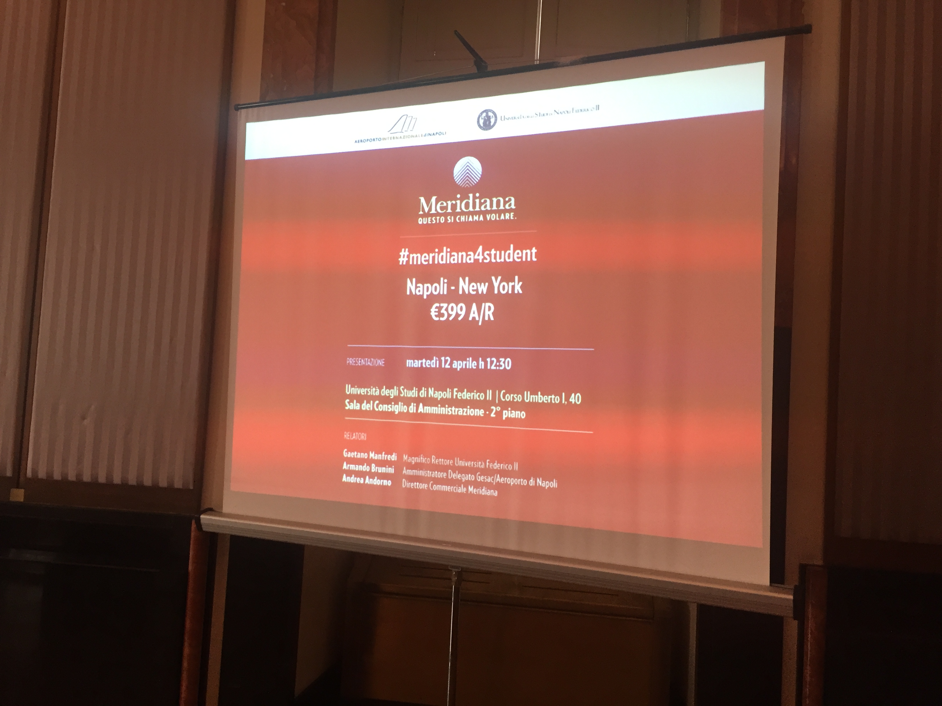 Merudiana lancia anche nel 2016 l’accordo con l’Universita’ Federico II di Napoli per permettere agli studenti di volare per New York JFK con una speciale tariffa a partire da 399€ all inclusive andata e ritorno. L’operativita’ del volo da Napoli nel 2016 avra’ una copertura di sette frequenze settimanali su sette.