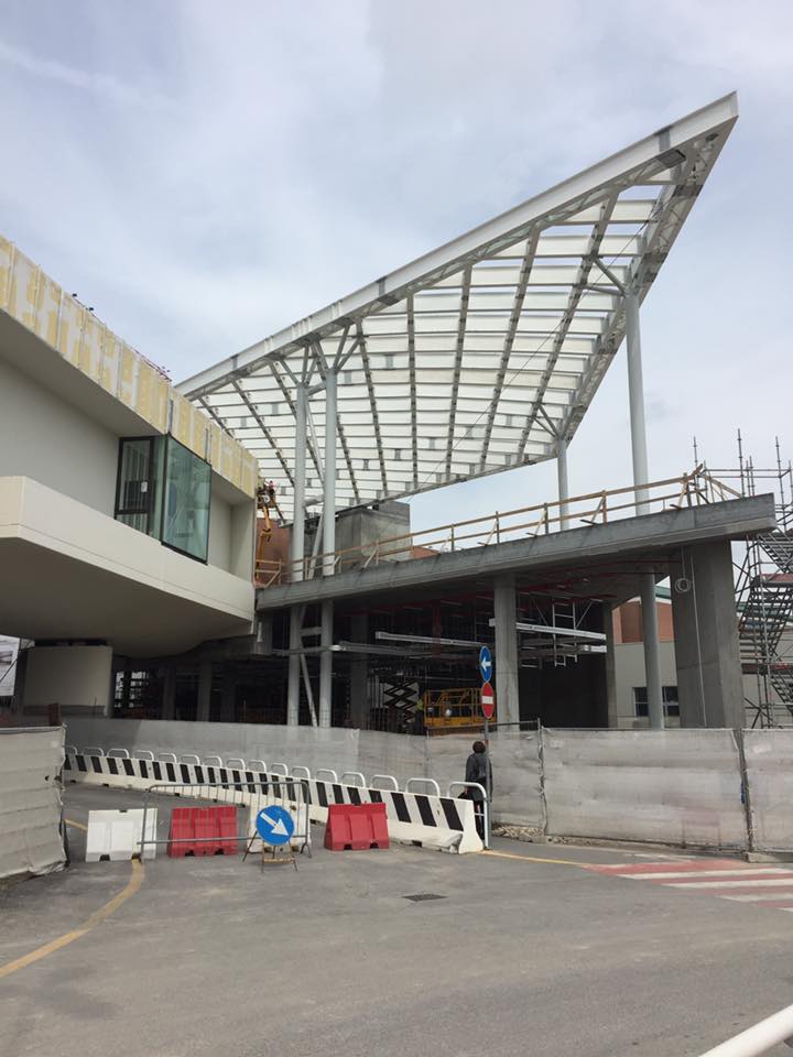 La prima ritrae la piattaforma a tetto in acciaio eppoi vetro che sarà parte dell’espansione a destra della parte landside del terminal.