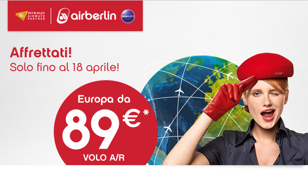 Prendi al volo l´occasione e prenota i voli a tariffa promozionale per l‘Europa a partire da 89 €* A/R, es. Berlino, Zurigo!