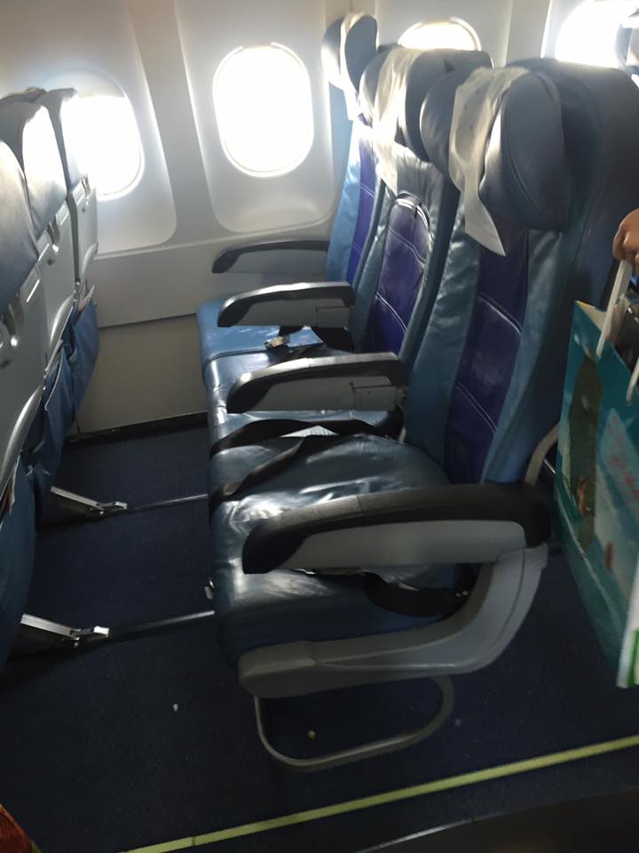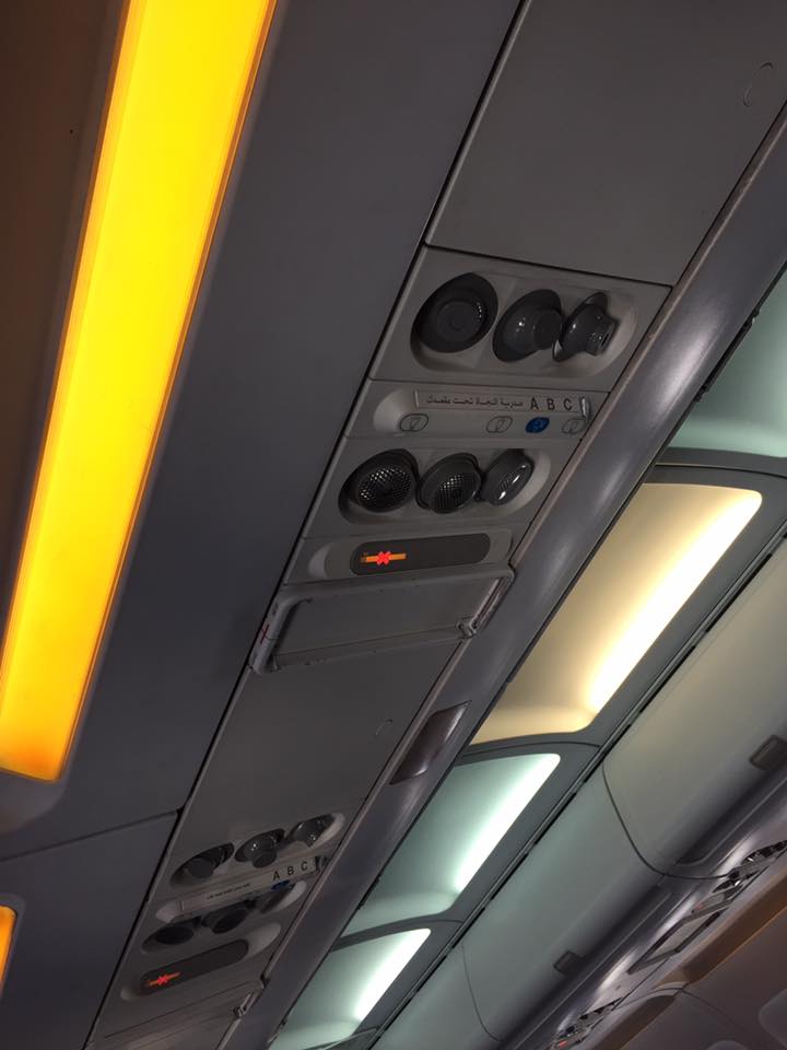 La parte superiore ci mostra un aereo che sia negli interni come sedute e cappelliere ha i suoi 17 anni, ma comunque in più che buone condizioni.