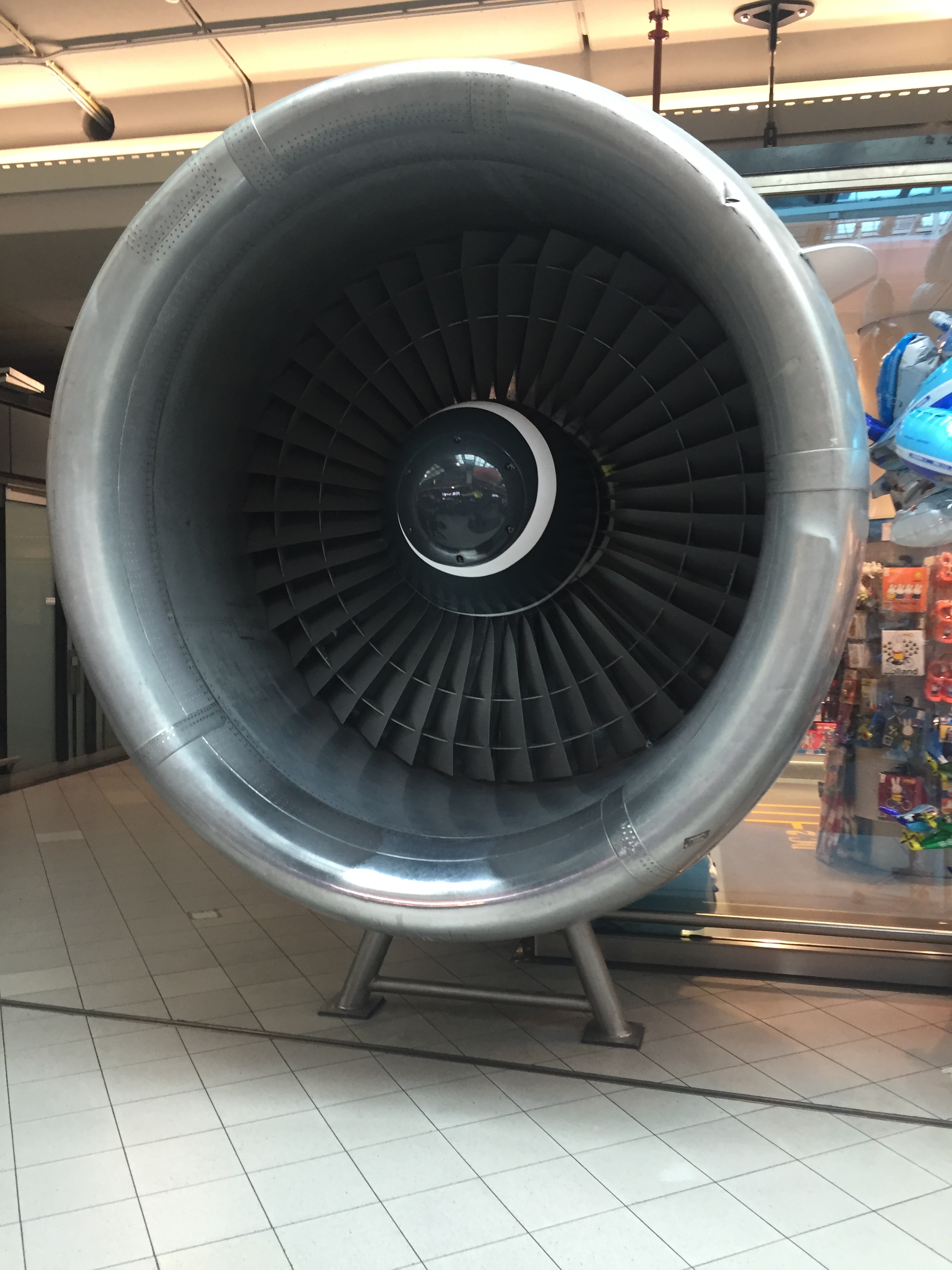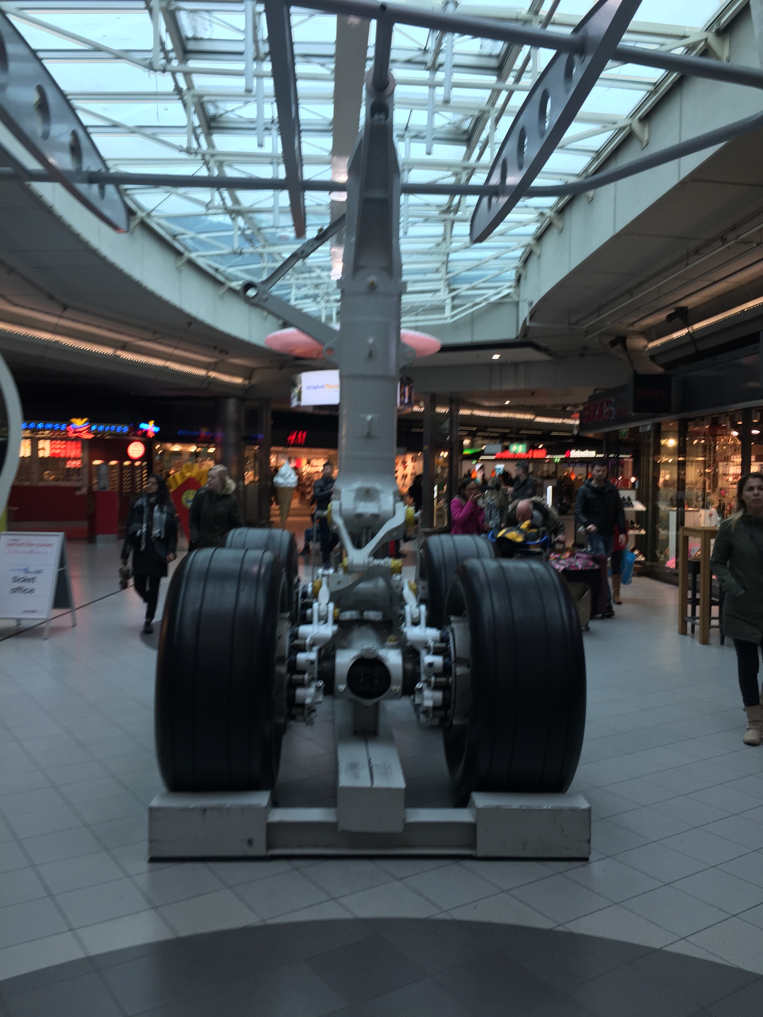 Qui e’ Amsterdam dove a @schipolairport si puo’ trovare un carrello principale, un motore, una fusoliera di un DC9/32, poi sulla terrazza un Fokker 100