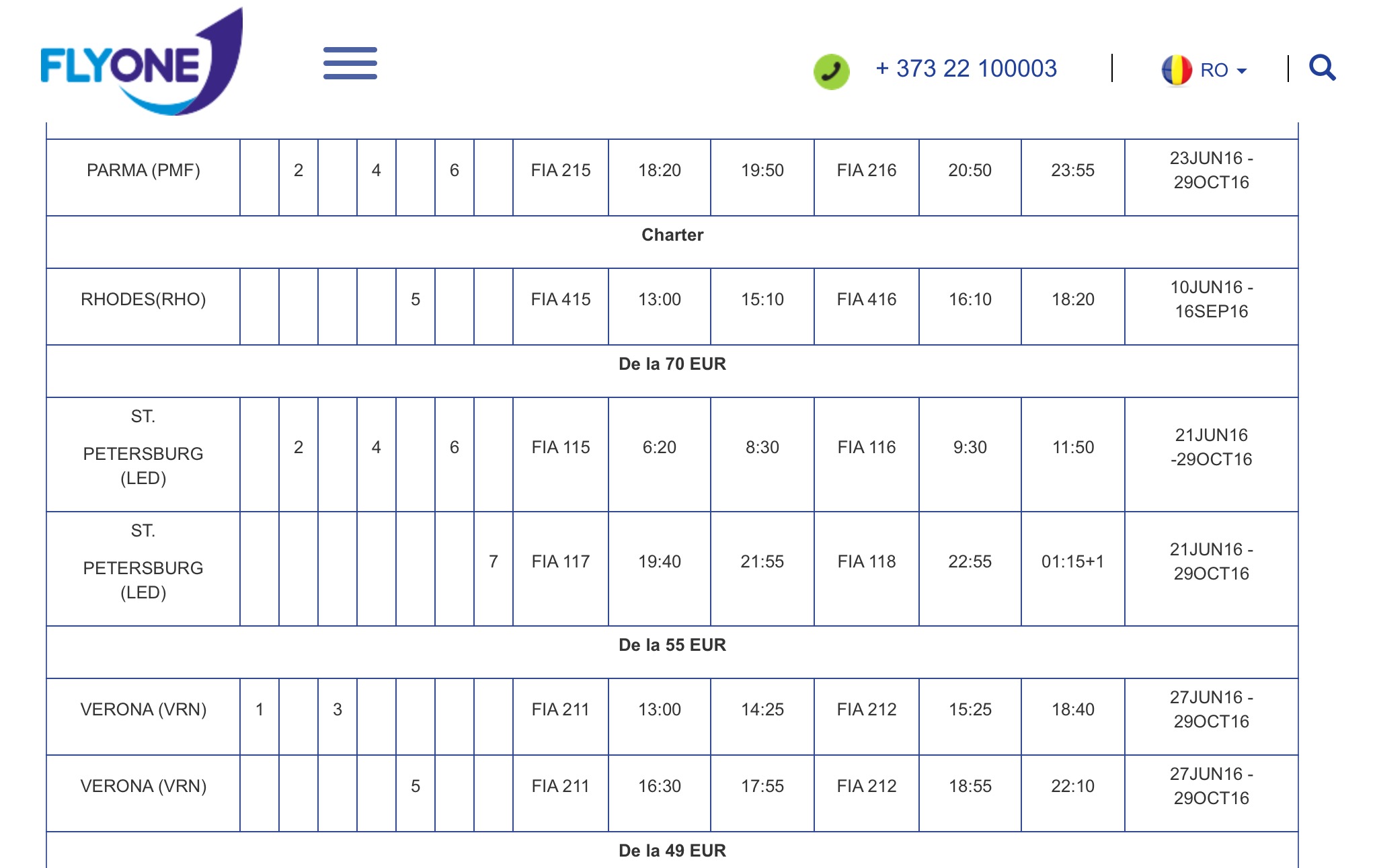I nuovi voli FlyOne sull’Italia saranno come detto da Chisinau per Parma e Verona entrambi con frequenza trisettimanale.