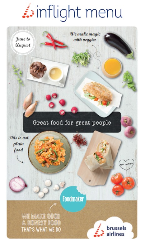 Wednesday, June 1, 2016 — Starting today, Brussels Airlines offers Foodmaker products on board of its European flights. The Belgian company created a vast array of healthy fresh meals and snacks for the airline.