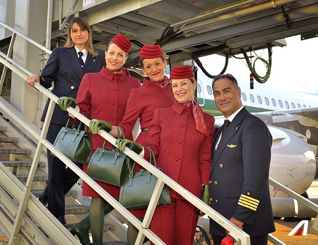 Cambia pagina Alitalia, da oggi 8/6/2016 gli equipaggi indossano le nuove divise disegnate da Ettore Bilotta.