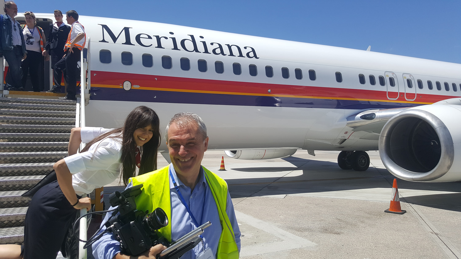 La riprese del cortometraggio si sono inoltre concluse nella giornata odierna, proprio con le due scene girate questa mattina: una era prevista a bordo dell’aereo Meridiana mentre l’altra si è svolta presso il gate di un volo della Compagnia. Il cortometraggio “L’Incontro”, realizzato in collaborazione con il Nuovo I.M.A.I.E (Nuovo Istituto per la Tutela dei Diritti degli Artisti Interpreti ed Esecutori), verrà a breve presentato durante i più prestigiosi festival cinematografici nazionali e internazionali.