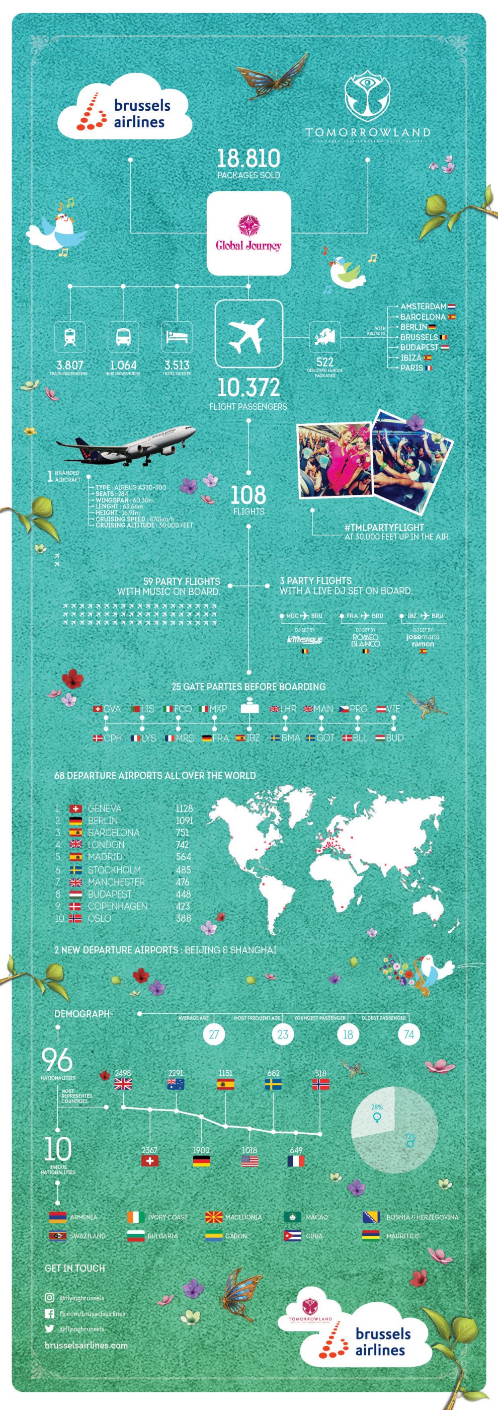 108 Tomorrowland flights, of which 59 party flights and 3 flights with live DJ at 30,000 feet.