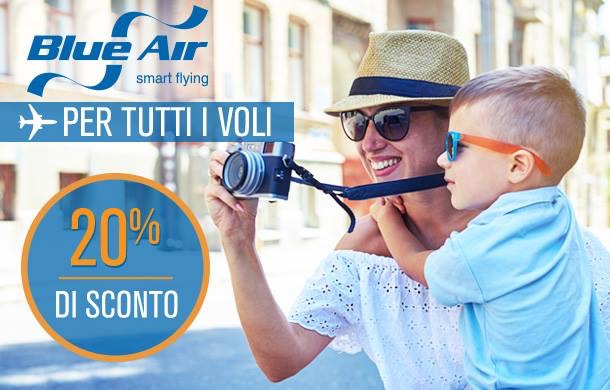 il venti per cento di sconto su tutte le rotte fino al 4/9.