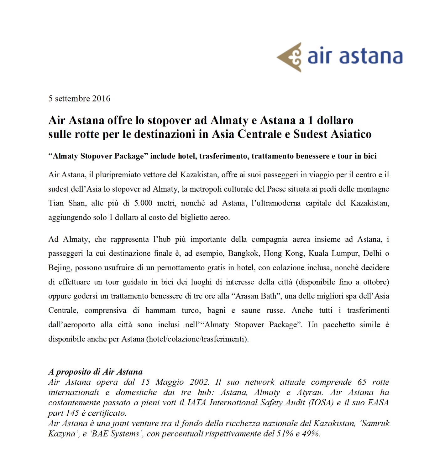 compagnie aeree, vola e paga poco @airastana : #1$ per volare in #Asia Centrale e Sud Est Asiatico oltre allo stop over ad AlmaAty Pubblicato da Italiavola il 5 settembre 2016 #Italiavolanews Alma Aty in stop over e le prosecuzioni da 1$. Questa la #strabiliante opportunità per conoscere anche qualche angolo del #Kazakistan. Condividi: Fai clic per condividere su Facebook (Si apre in una nuova finestra) Facebook Fai clic qui per condividere su LinkedIn (Si apre in una nuova finestra) LinkedIn Fai clic qui per condividere su Reddit (Si apre in una nuova finestra) Reddit Fai clic qui per condividere su Pinterest (Si apre in una nuova finestra) Pinterest Fai clic qui per condividere su Tumblr (Si apre in una nuova finestra) Tumblr Fai clic per condividere su X (Si apre in una nuova finestra) X Mi piace Caricamento... Correlati