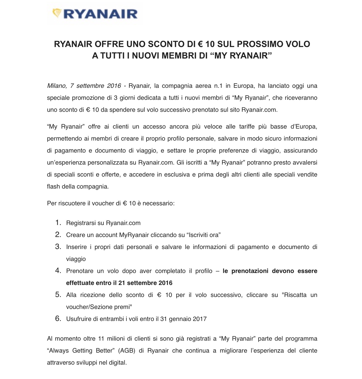 Nuove possibilità da ora iscrivendosi al programma My Ryanair.