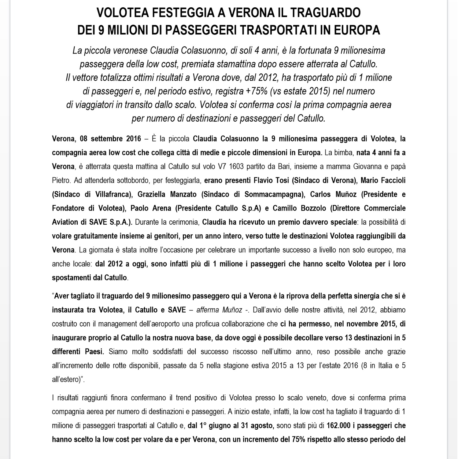 I passeggeri per #Volotea oggi arrivano al traguardo dei #9milioni. La #festa e’ stata fatta a Verona, un #aeroporto in crescita che dal #2017 vedrà un terzo aereo e nuove rotte.