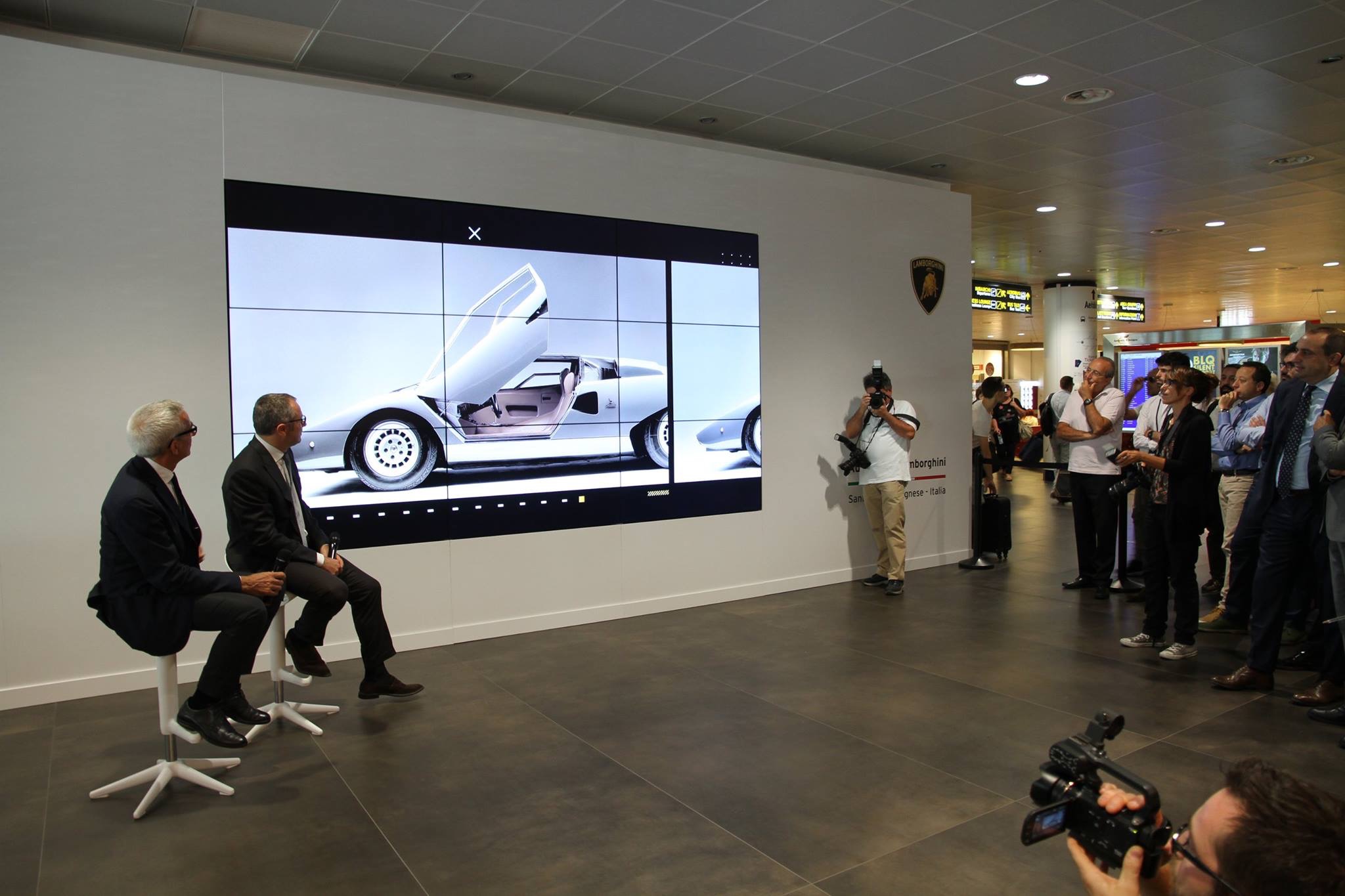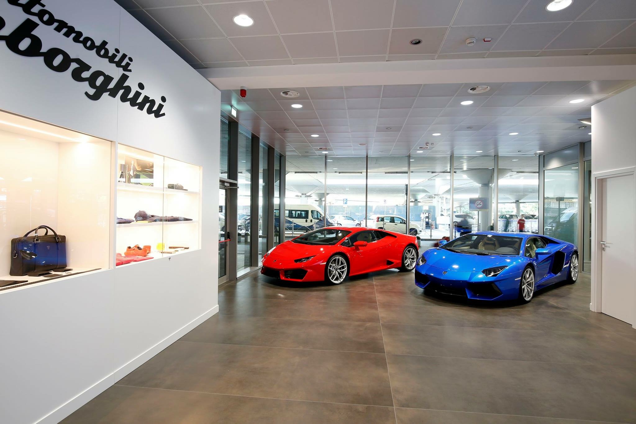 Con le immagini di #AdB #AeroportodiBologna vi mostriamo il nuovo spazio espositivo rinnovato della Automobili Lamborghini ufficialmente inaugurato questa mattina alla presenza di Enrico Postacchini – Presidente della Societa’ di gestione aeroportuale e Stefano Domenicali – Amministratore Delegato della azienda automobilistica.