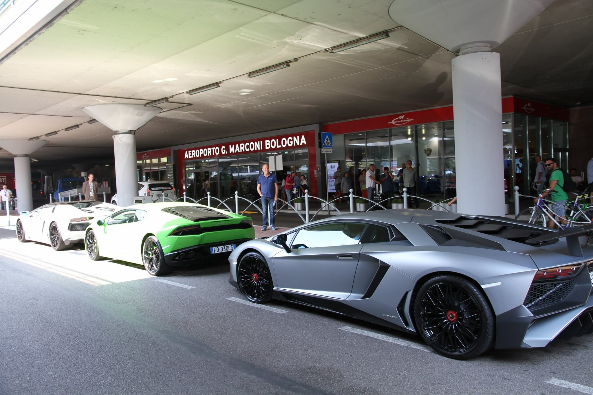 Qui le auto della produzione Lamborghini poste all’esterno.