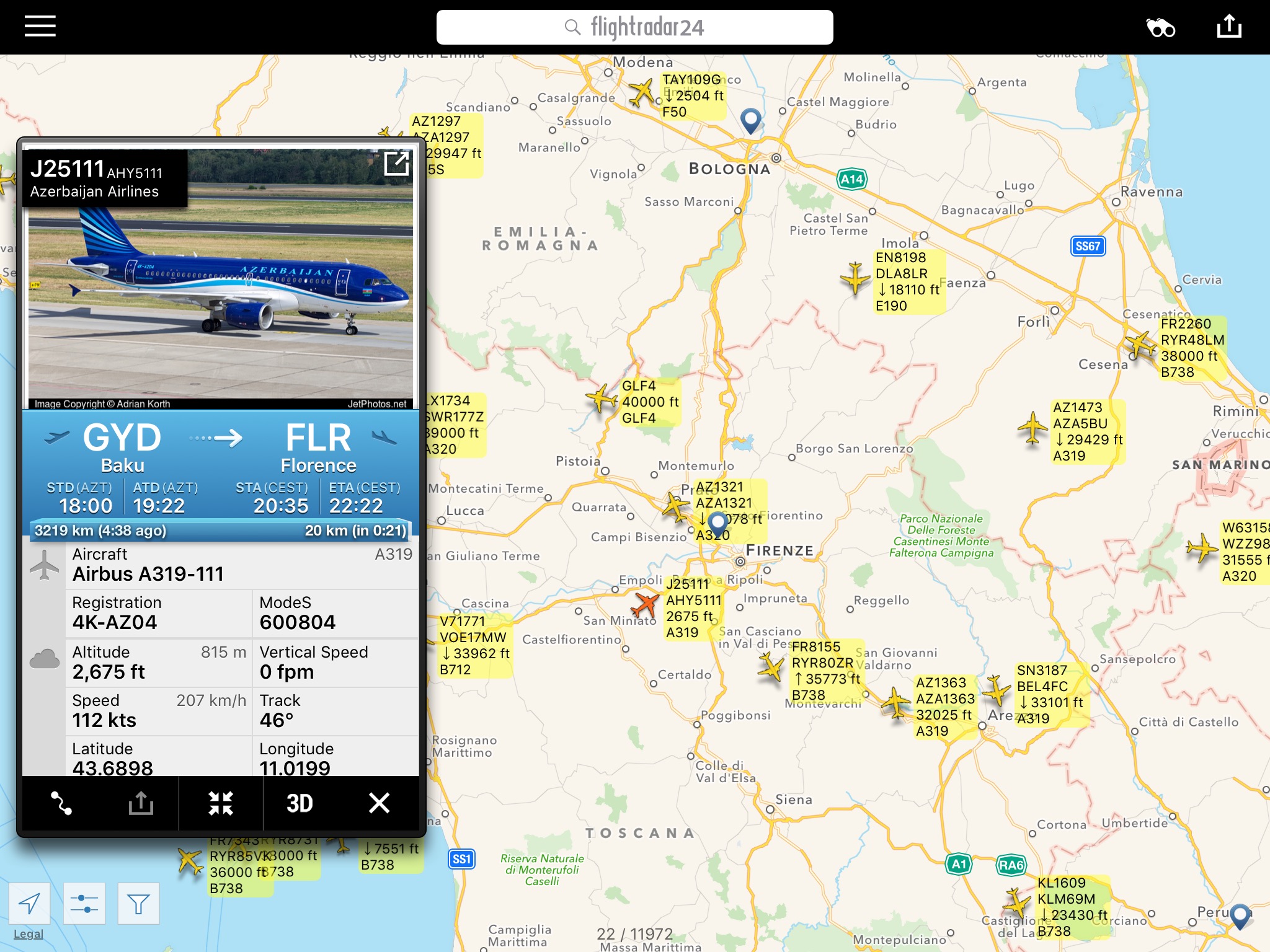 Un A319-111 4K-AZ04 e’ atterrato ora a Firenze proveniente da #Baku.