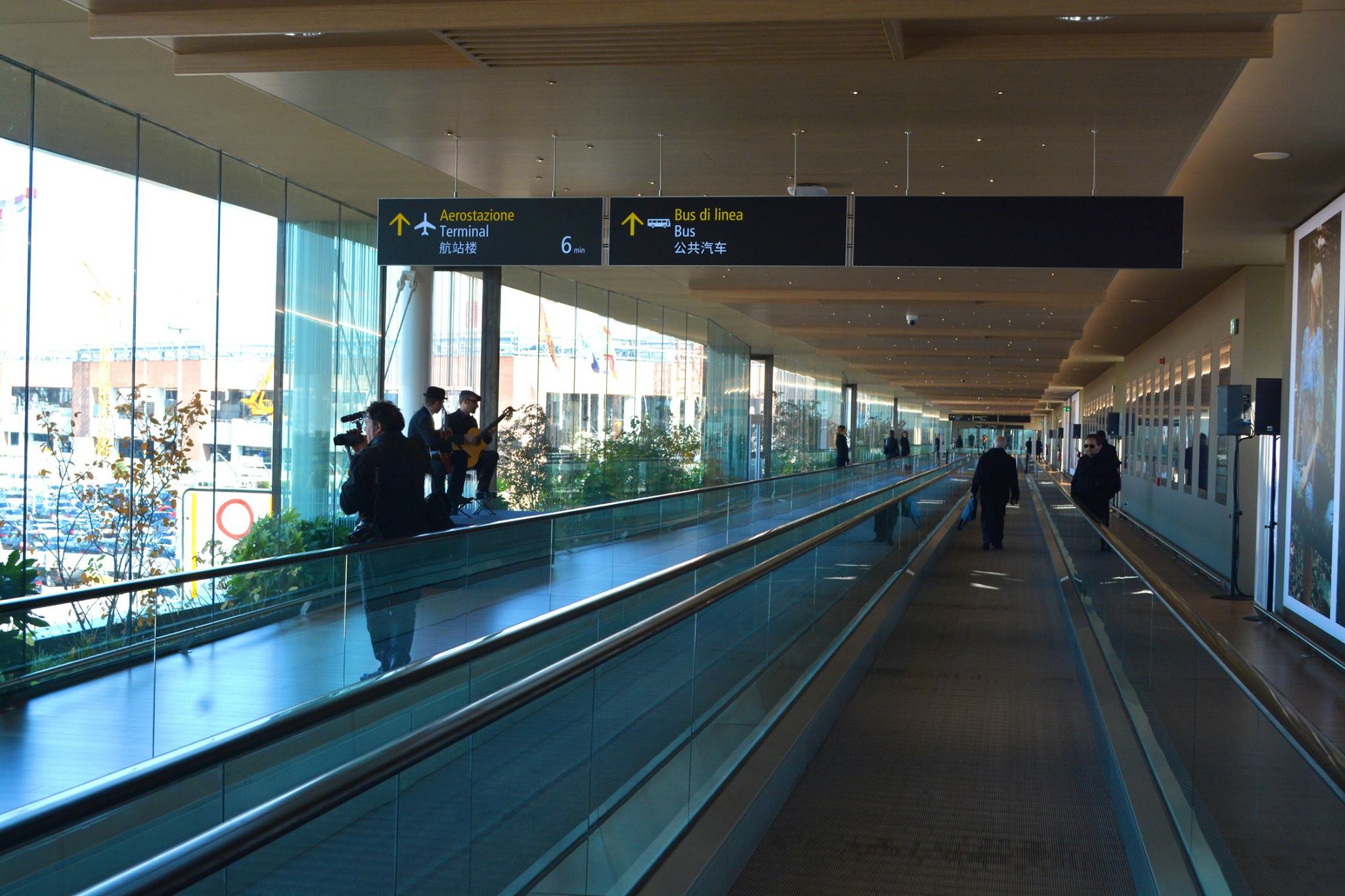 Passiamo al moving walkway che ha uno stile totalmente diverso rispetto alla stazione marittima dove i taxi marittimi ed i vaporetti faranno servizio.