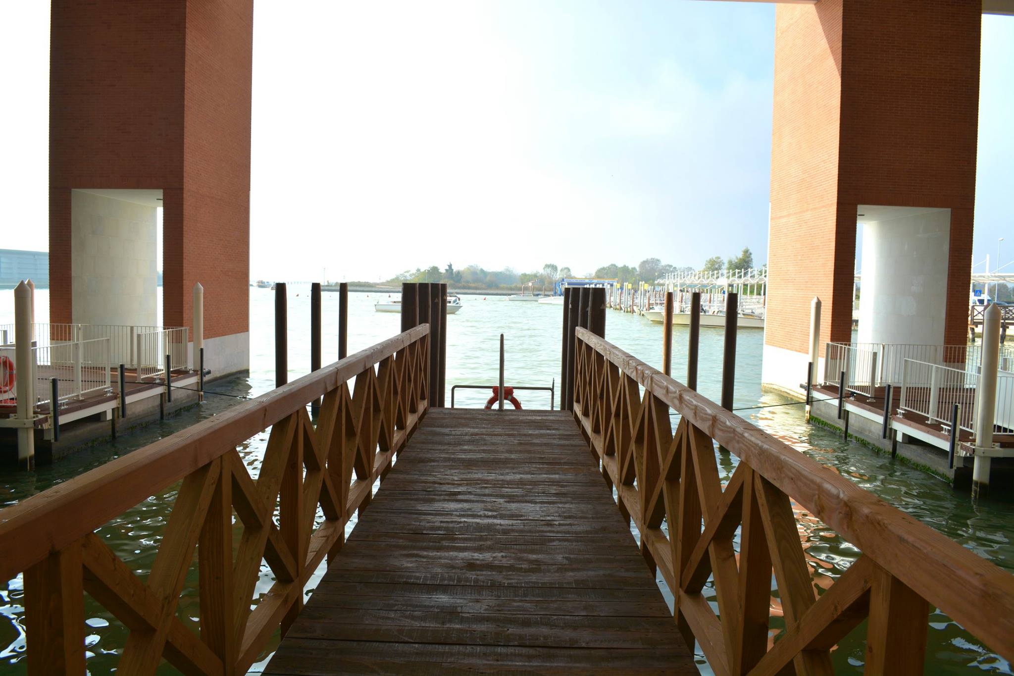 Ed eccolo il water terminal visto dalla darsena. Una realizzazione in stile veneziano, molto moderno, con gli stessi materiali come i mattoni e la pietra d’Istria.