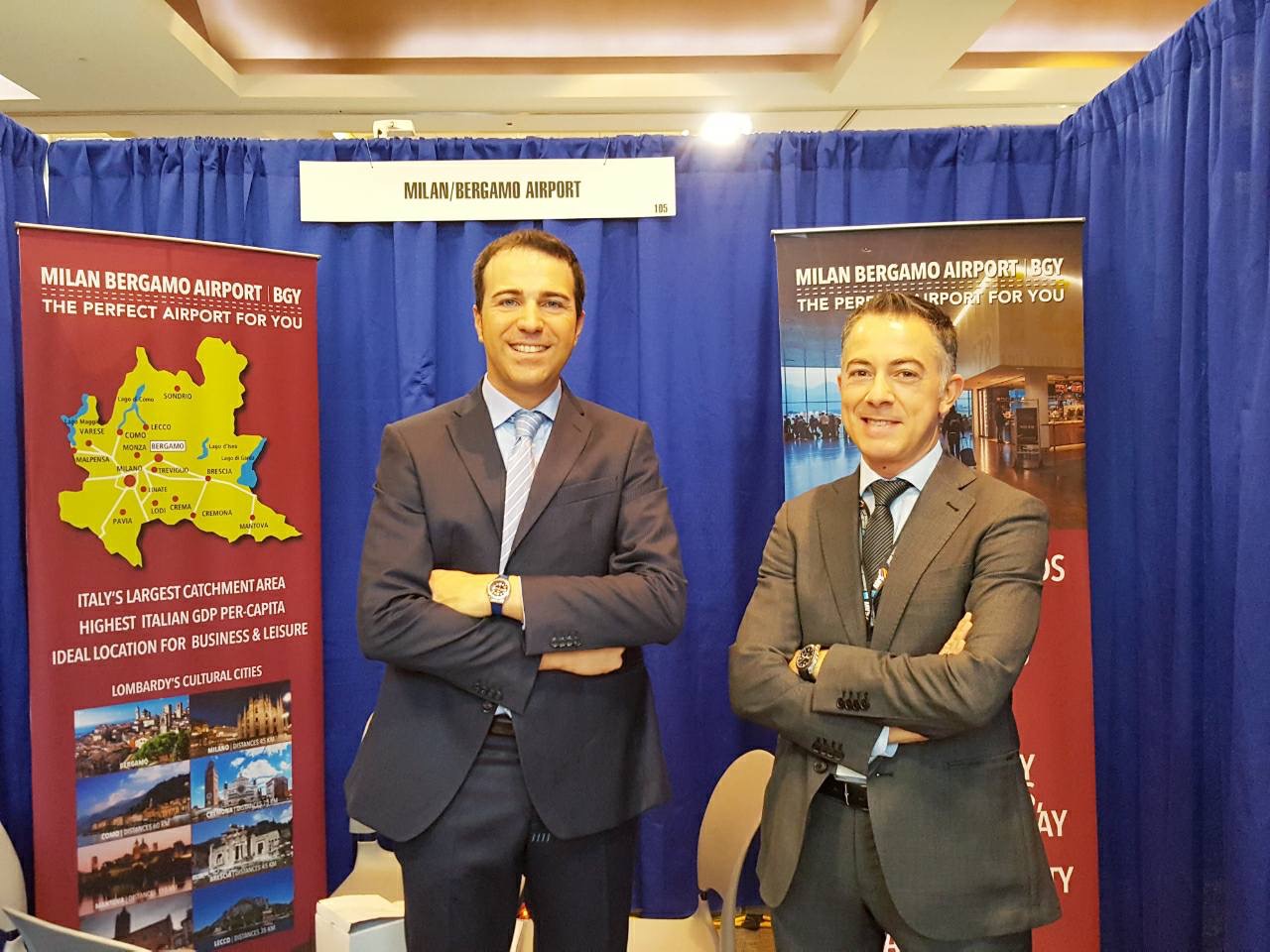 Da oggi all’11 novembre e’ in corso ad Atlanta la 139esima IATA slot conference. Qui il booth dell’aeroporto di Bergamo ed il team dello scalo orobico. Da sinistra verso destra: Alberto Cominassi – Head of Planning & Corporate Development e Giacomo Cattaneo – Aviation Business Development Manager.