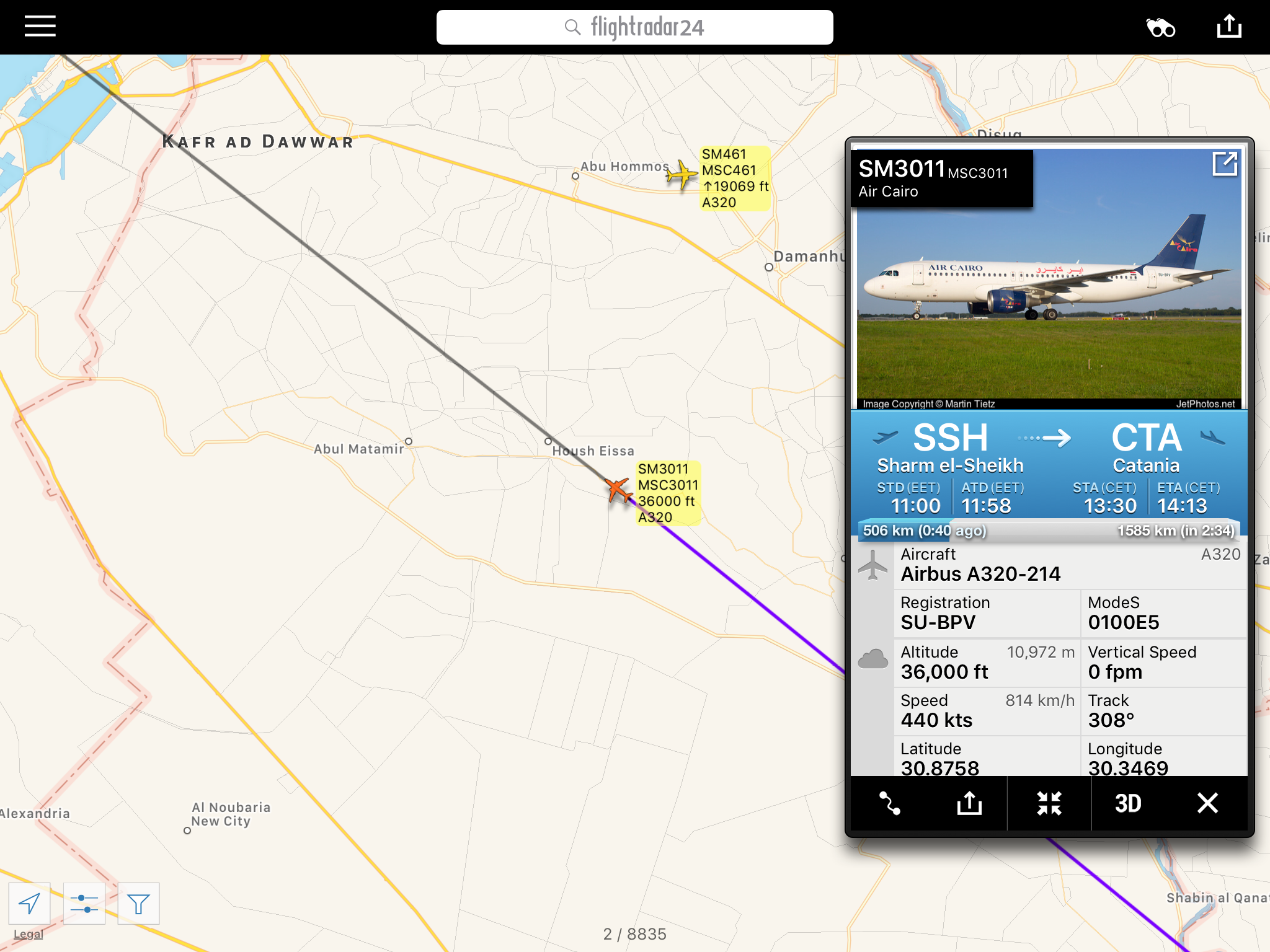 oggi infatti questo A320 SU-BPV partito stamani da Sharm El Sheikh prima atterrerà a Catania, Roma, poi a Pisa e quindi a Torino prima di ripartire di nuovo verso Sharm El Sheikh.