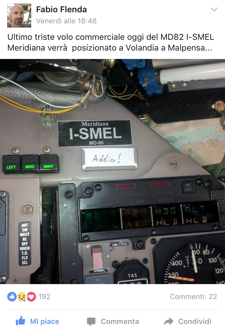 compagnie aeree Pubblicato da Italiavola il 14 novembre 2016 Un gesto di affetto, lasciato a destra di I-SMEL nella giornata di venerdi. L’immagine e’ pubblicata nella pagina Facebook ” Save the “MAD-DOG”….”. #SavetheMaddog #Meridiana #ISMEL #MD82 #MD80 #McDonnelDouglas #Volandia Condividi: Condividi su Facebook (Si apre in una nuova finestra) Facebook Share on LinkedIn (Si apre in una nuova finestra) LinkedIn Condividi su Reddit (Si apre in una nuova finestra) Reddit Share on Pinterest (Si apre in una nuova finestra) Pinterest Condividi su Tumblr (Si apre in una nuova finestra) Tumblr Condividi su X (Si apre in una nuova finestra) X Mi piace Caricamento... Correlati