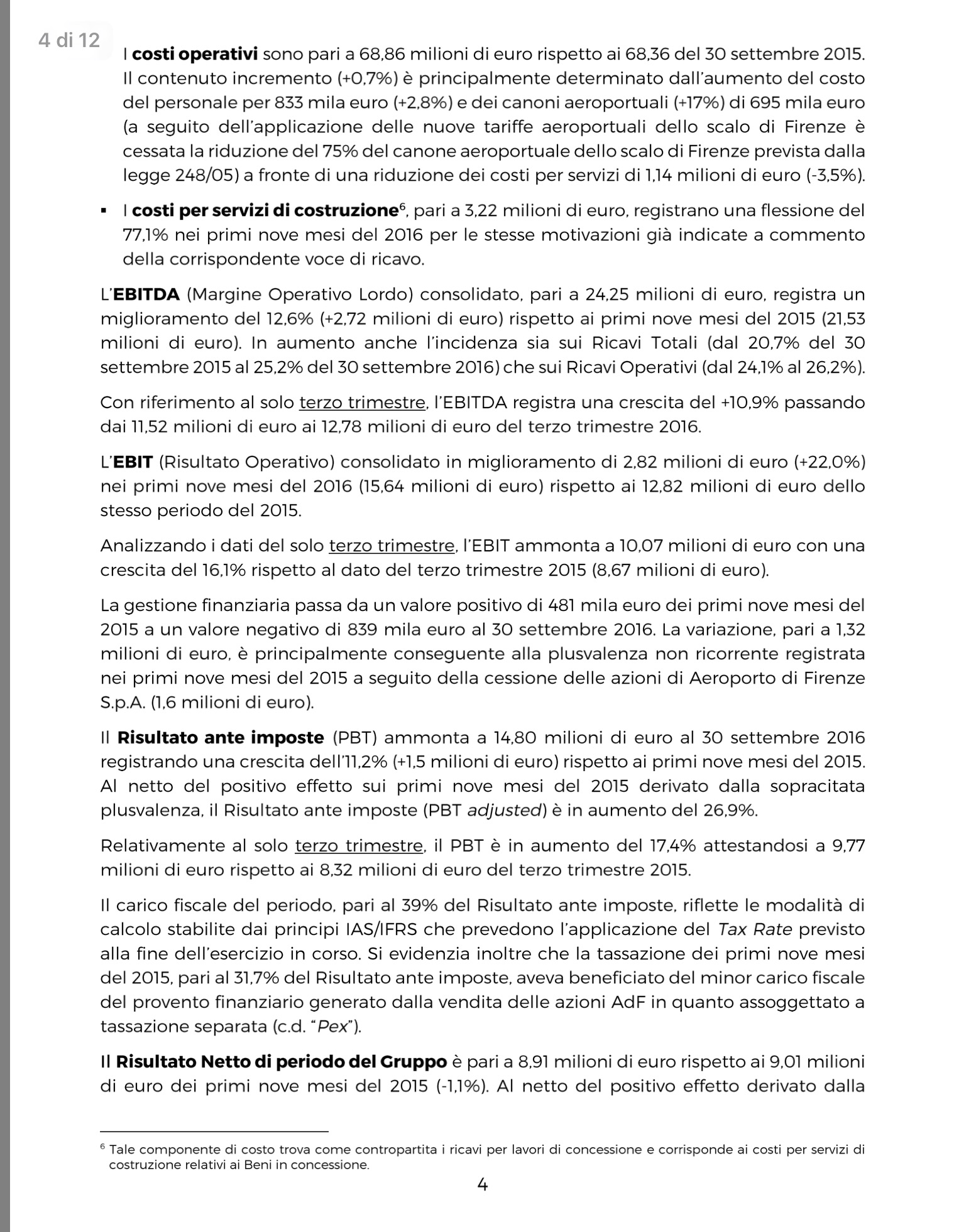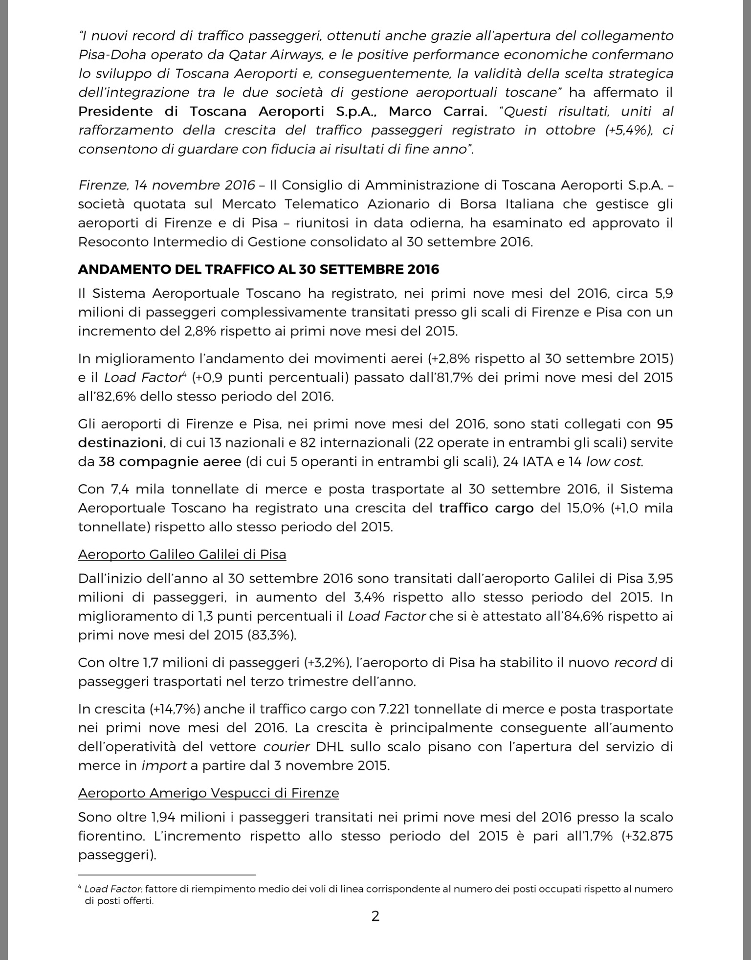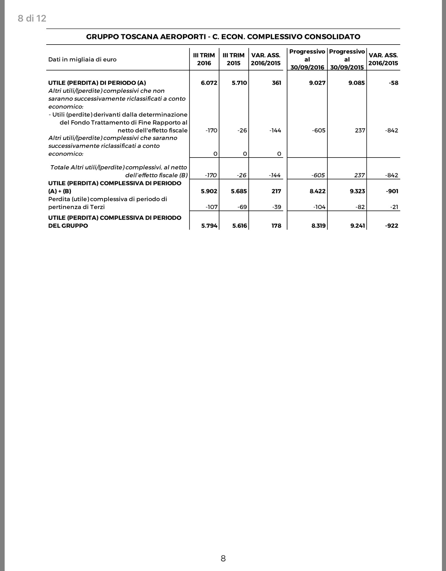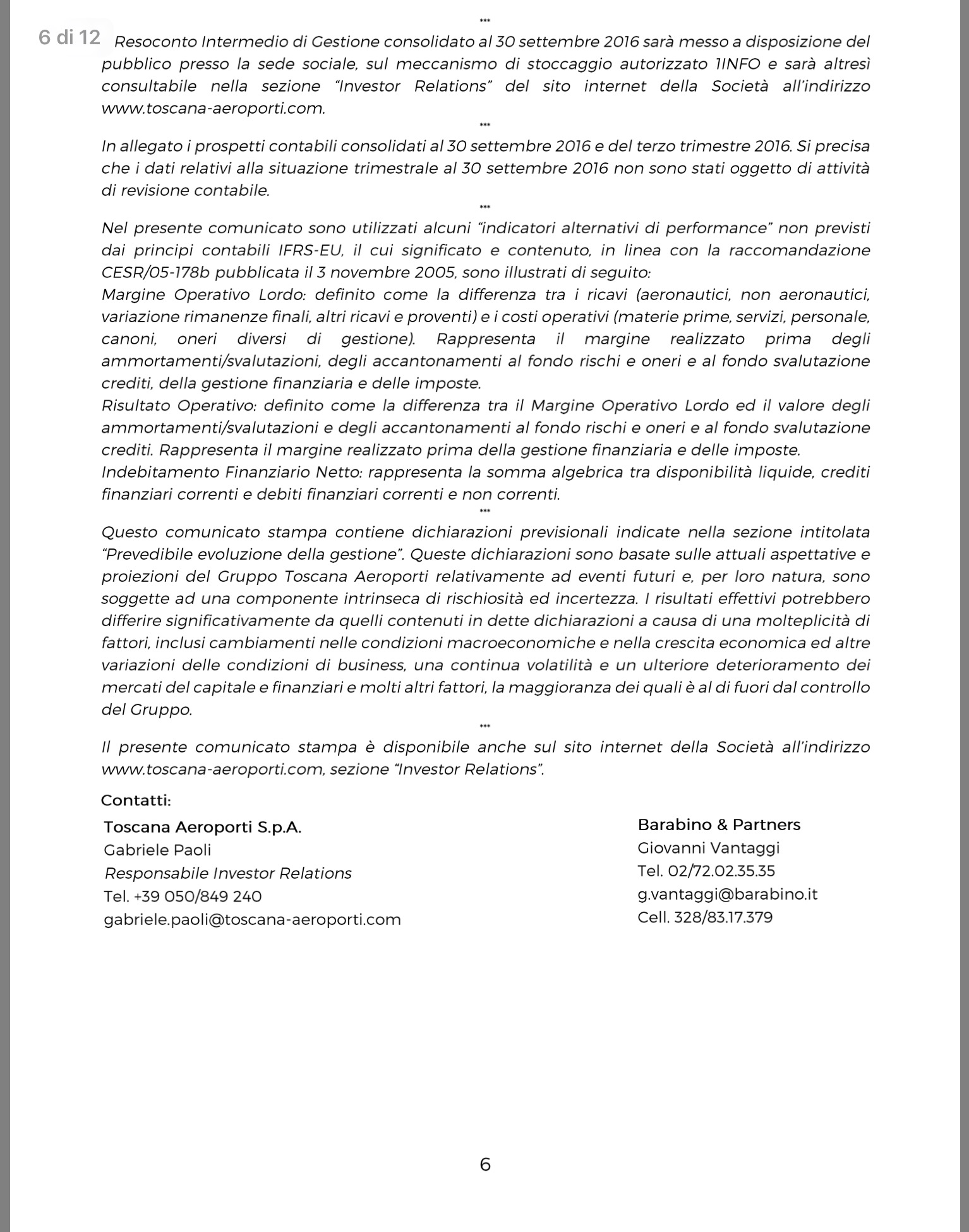 aeroporti Terza trimestrale 2016 per Toscana Aeroporti. Utili e fatturato in calo Pubblicato da Italiavola il 14 novembre 2016 Qui a seguire il comunicato stampa ed i resoconti economici del terzo trimestre di Toscana Aeroporti, la società che gestisce gli aeroporti di Pisa e Firenze. Condividi: Fai clic per condividere su Facebook (Si apre in una nuova finestra) Facebook Fai clic qui per condividere su LinkedIn (Si apre in una nuova finestra) LinkedIn Fai clic qui per condividere su Reddit (Si apre in una nuova finestra) Reddit Fai clic qui per condividere su Pinterest (Si apre in una nuova finestra) Pinterest Fai clic qui per condividere su Tumblr (Si apre in una nuova finestra) Tumblr Fai clic per condividere su X (Si apre in una nuova finestra) X Mi piace Caricamento... Correlati