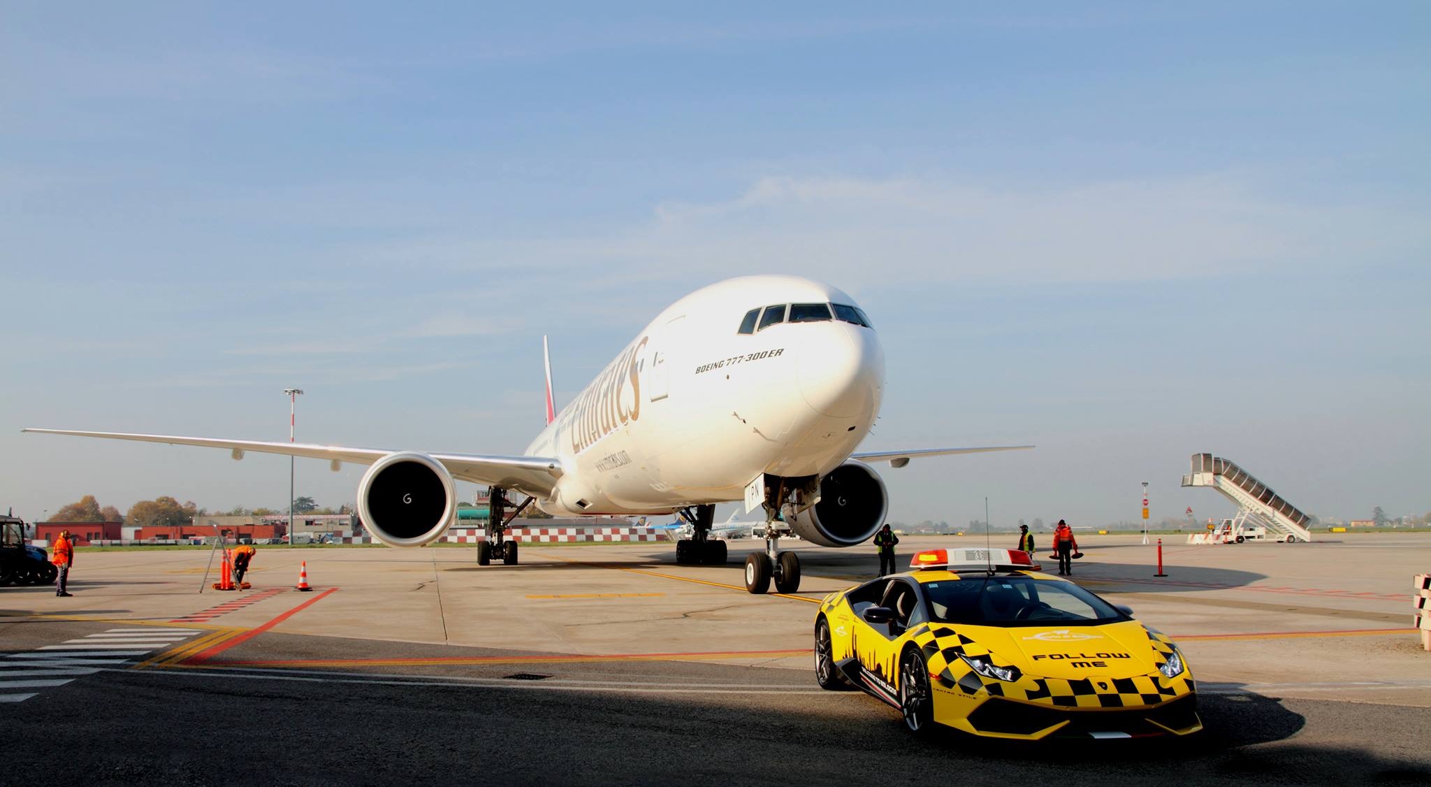 L’immagine e’ della pagina Facebook dell’aeroporto di Bologna e ritrae la Lamborghini Huracan follow me data in uso al suo aeroporto di casa fino al 15 gennaio 2017.