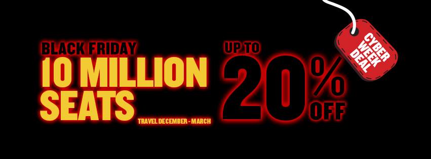 Parte delle promozioni della “Cyber Week”, questi posti sono disponibili per viaggiare da dicembre a marzo, ma devono essere prenotati entro la mezzanotte (24:00) di oggi (venerdì).