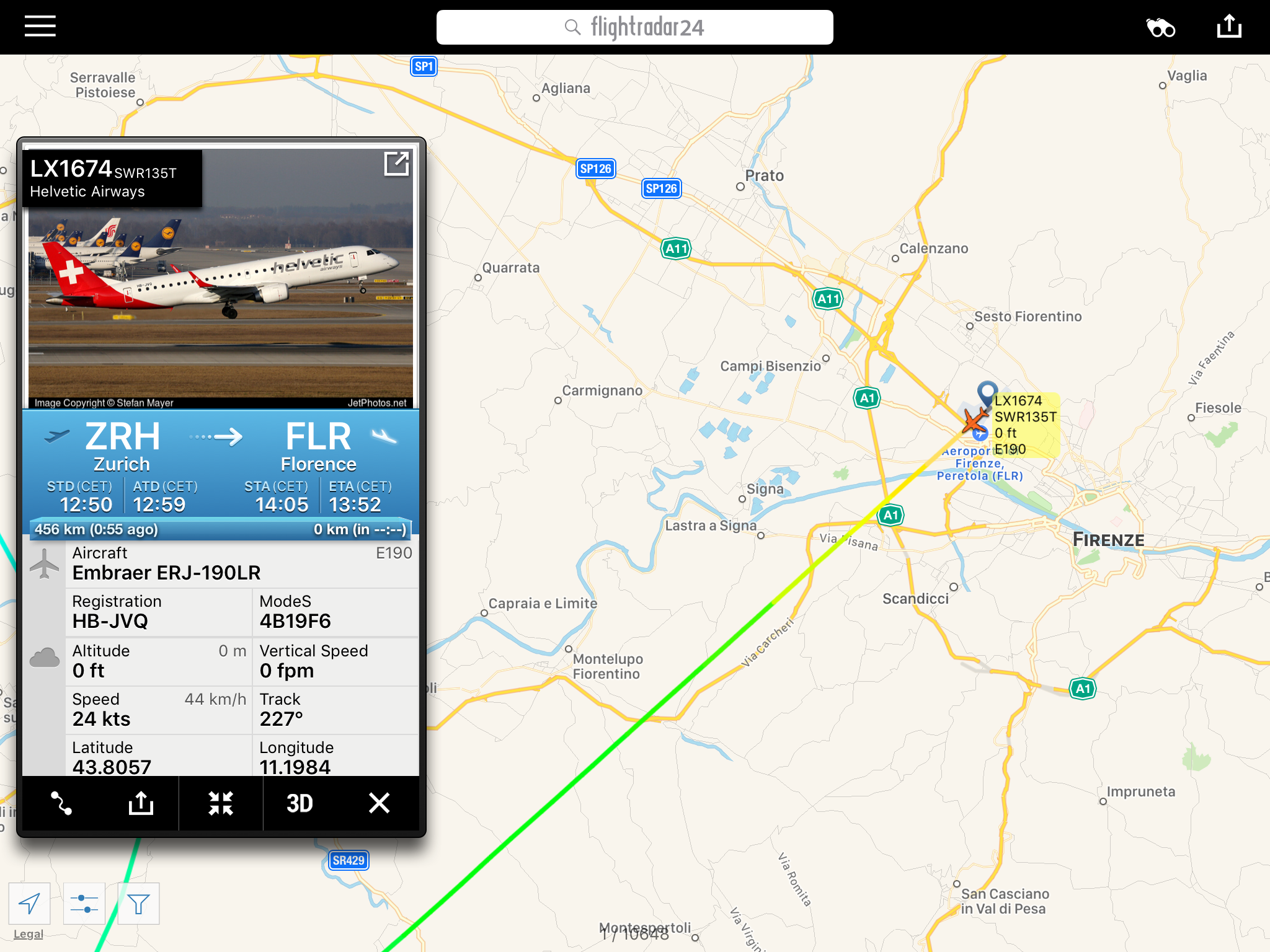 Questo #aereo ci è’ riuscito ad atterrare a #Firenze. Nonostante le raffiche di #vento ha trovato il momento giusto per completare l’avvicinamento con l’atterraggio. È’ il volo #Swiss #LX1674 da #Zurigo con #EMB190 #Helvetic #HB-JVO.