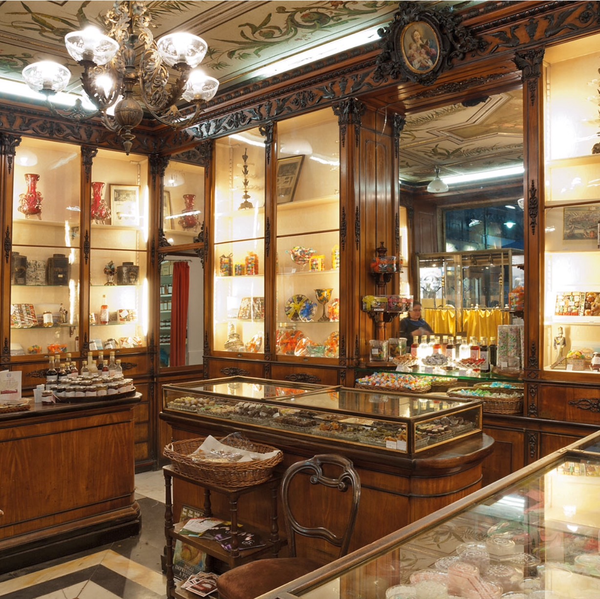 Da venerdì al piano partenze dell’aeroporto di Genova apre i battenti un marchio storico della città ligure. Si tratta dell’Antica Confetteria Romanengo. Qui, nella fotografia gli interni di uno dei suoi negozi presenti nel centro di Genova.