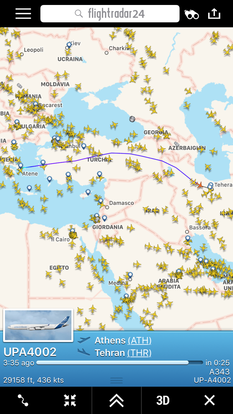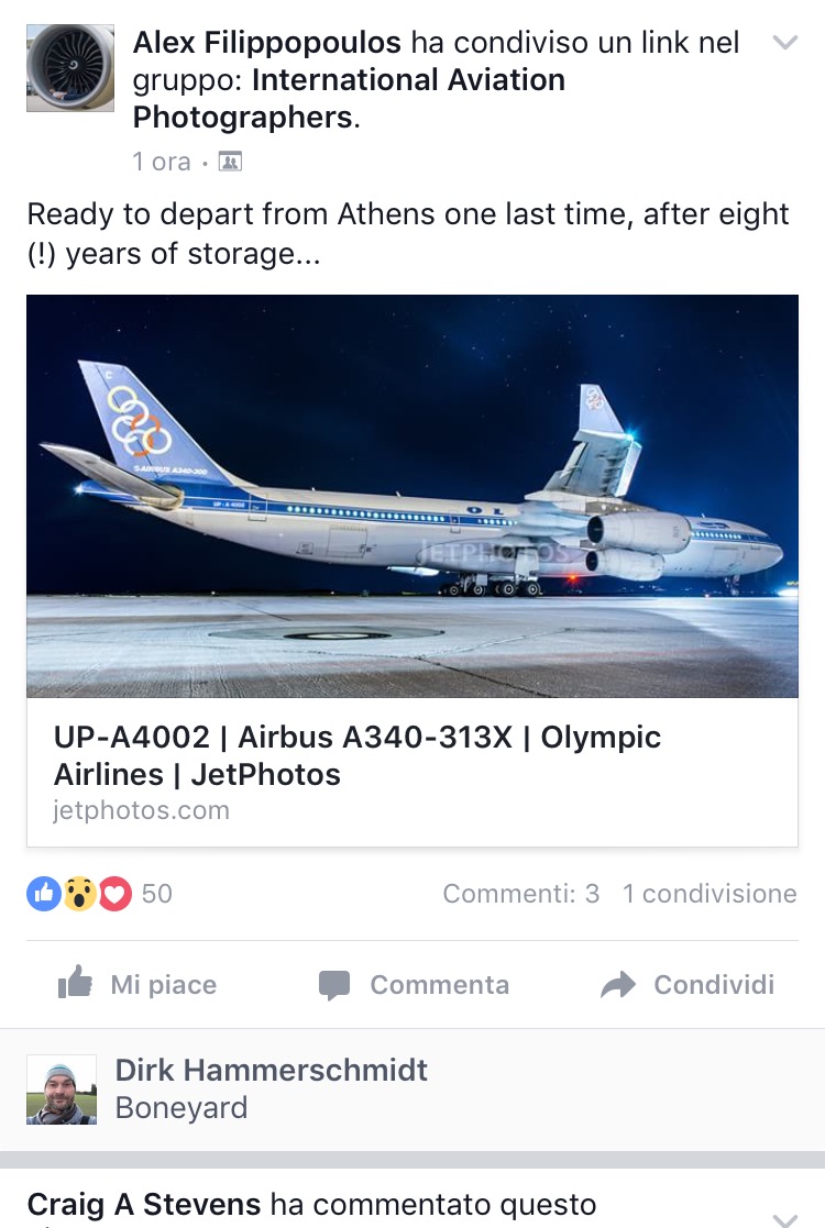 Questo e’ un tributo a questo aereo che veste ancora la livrea di Olympic. Ha assunto le marche UP-A4002, dopo otto anni di sosta ad Atene ha nuovamente volato. Questo aereo con questa livrea ha volato svariate volte dalla Grecia all’Italia con la gloriosa Olympic Airways. Ora, vedremo che cosa gli riservera’ il futuro. L’aeroporto di atterraggio e’ Teheran Mehrabad. Andra’ a Mahan Air?