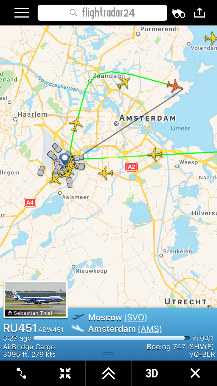 Questi, alcuni screenshot di ora che chiarificano la situazione critica attuale ad #Amsterdam. Gli aerei non riescono ad atterrare.