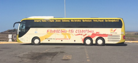 La litorale adriatica marchigiana ed abruzzese per arrivare a Roma Ciampino e Fiumicino. Questa l’offerta di questi comodi bus della Gaspari Bus. Sette le corse al giorno in ogni senso e tutti i giorni della settimana. Si parte da San Benedetto del Tronto con fermate a San Benedetto Porto d’Ascoli, Giulianova, Alba Adriatica, L’Aquila, Martinsicuro, Teramo. Gaspari Bus e’ un azienda trasportistica di Giulianova. Gli autobus gran turismo hanno toilette, wifi. I biglietti sono acquistabili su http://www.gasparionline.it