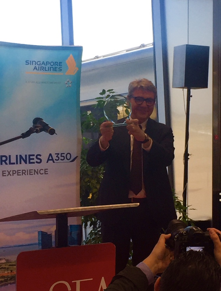 Il Dott. Tucci ha rimarcato l’importanza della giornata e della decisione della compagnia aerea di Singapore Airlines nell’introdurre il nuovissimo velivolo Airbus a Milano.