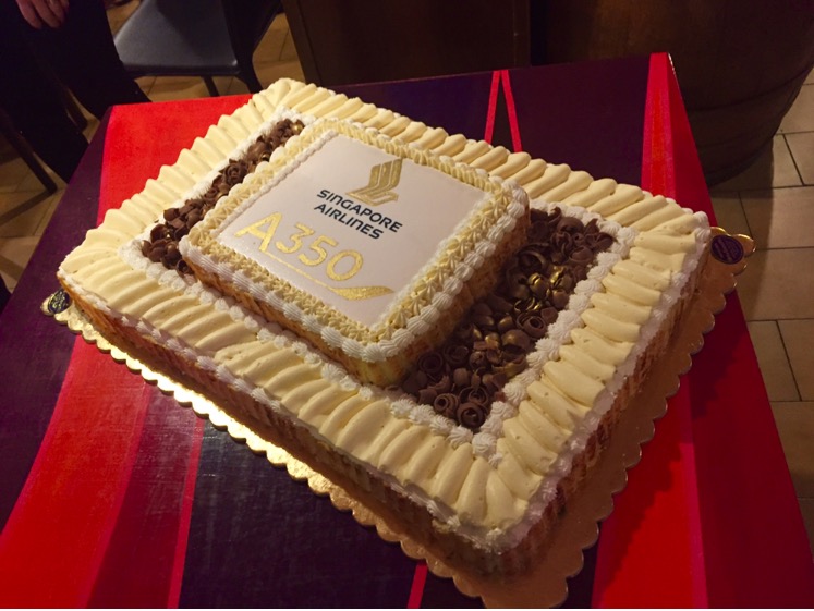 Questa la torta che e’ stata tagliata al successivo pranzo offerto dalla compagnia aerea.