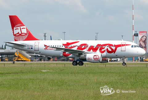 Il A319-111 della FlyErnest oggi è volato anche a Verona. Dopo aver visitato Cuneo e Bologna, l’aereo EI-FVG come ERN8004 è decollato dallo scalo bolognese ed è atterrato pochi minuti dopo a Verona. Quindi come ERN8005 è ripartito per Milano Malpensa.