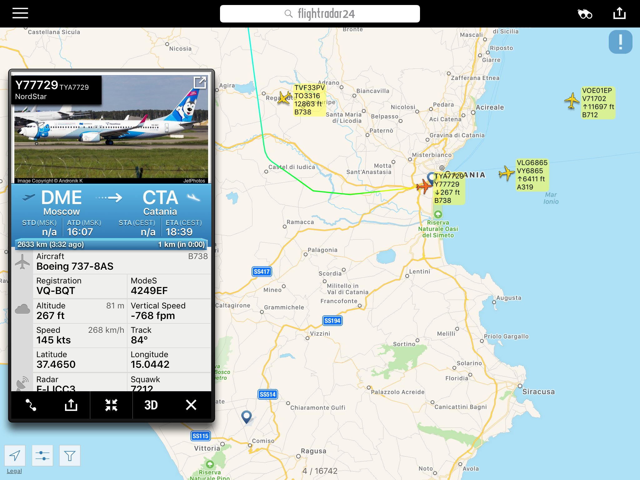 Eccolo l’aereo di #NordStar atterrato a #Catania proveniente da #Mosca Domodedovo.