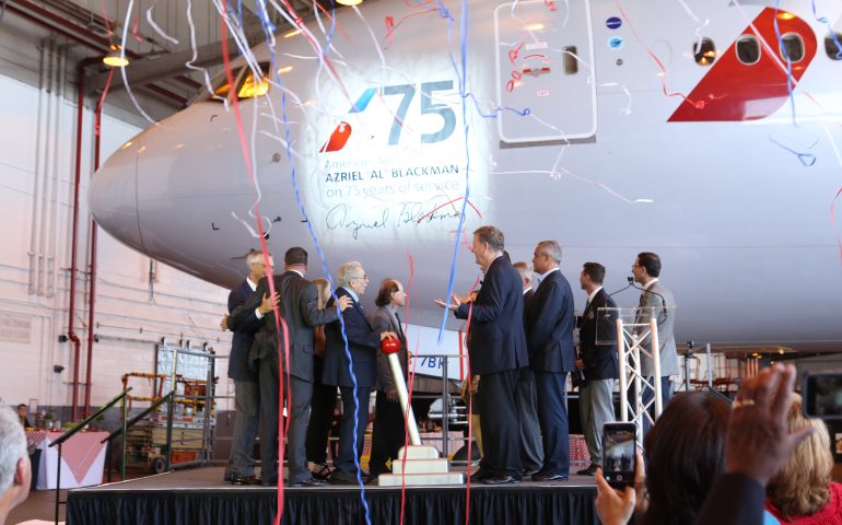 FORT WOTH, Texas – Azreil “Al” Blackman, membro del team di American Airlines in qualità di Aviation Maintenance Technician (#AMT) Crew Chief, e basato all’aeroporto internazionale di New York John F. Kennedy (JFK), ha festeggiato nel mese di luglio 2017 i 75 anni di servizio nella compagnia aerea. Nel corso della cerimonia American ha voluto sorprendere il festeggiato dedicando un aeromobile B777 in suo onore.