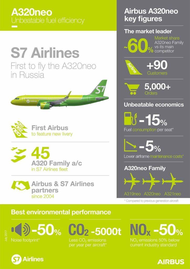 Tolosa, 21 luglio 2017 – #S7 Airlines, uno dei più importanti vettori della Russia e membro dell’alleanza #Oneworld, ha ricevuto il suo primo A320neo, in leasing da #BOCAviation. L’aeromobile è stato il primo Airbus a sfoggiare la nuova livrea del vettore ed è anche il primo aeromobile NEO a operare in #Russia.