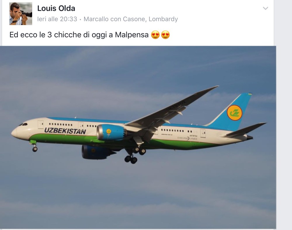 compagnie aeree Uzbekistan : Prima volta in Italia con il Dreamliner Pubblicato da Italiavola il 29 luglio 2017 In questo screenshot da #Facebook apprendiamo che #Uzbekistan Airways ieri e’ atterrata a #Milano #Malpensa con il #B787-8 #Dreamliner. #UzbekistanAirways Condividi: Fai clic per condividere su Facebook (Si apre in una nuova finestra) Facebook Fai clic qui per condividere su LinkedIn (Si apre in una nuova finestra) LinkedIn Fai clic qui per condividere su Reddit (Si apre in una nuova finestra) Reddit Fai clic qui per condividere su Pinterest (Si apre in una nuova finestra) Pinterest Fai clic qui per condividere su Tumblr (Si apre in una nuova finestra) Tumblr Fai clic per condividere su X (Si apre in una nuova finestra) X Mi piace Caricamento... Correlati