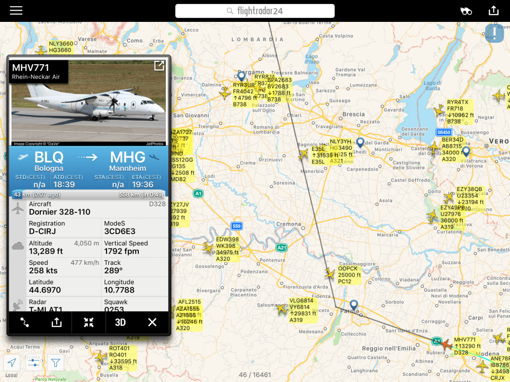 Ieri a #Bologna e’ arrivato e ripartito in seguito per #Mannheim un Dornier 328-110 D-CIRJ.