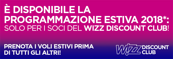 È disponibile la programmazione estiva 2018*: solo per i soci del #WIZZ Discount Club!