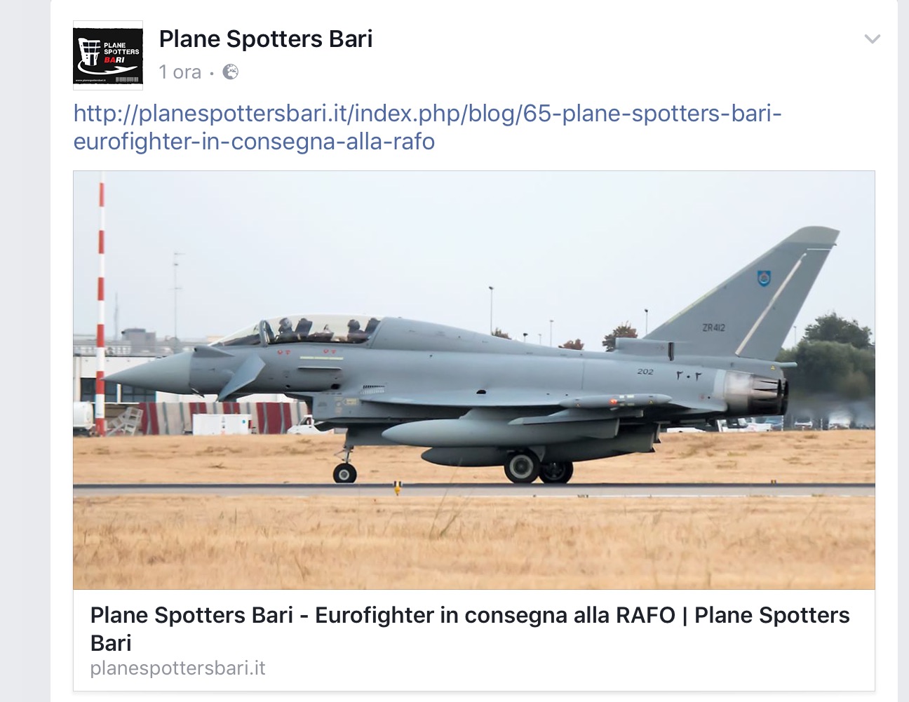 Dopo la querelle montata a #Bologna da un giornalista che presunti aerei “armati” sauditi si fermassero a Bologna per fare carburante. Qualche giorno fa a #Bari e’ atterrato un #EFA biposto destinato al Regno dell’Oman.