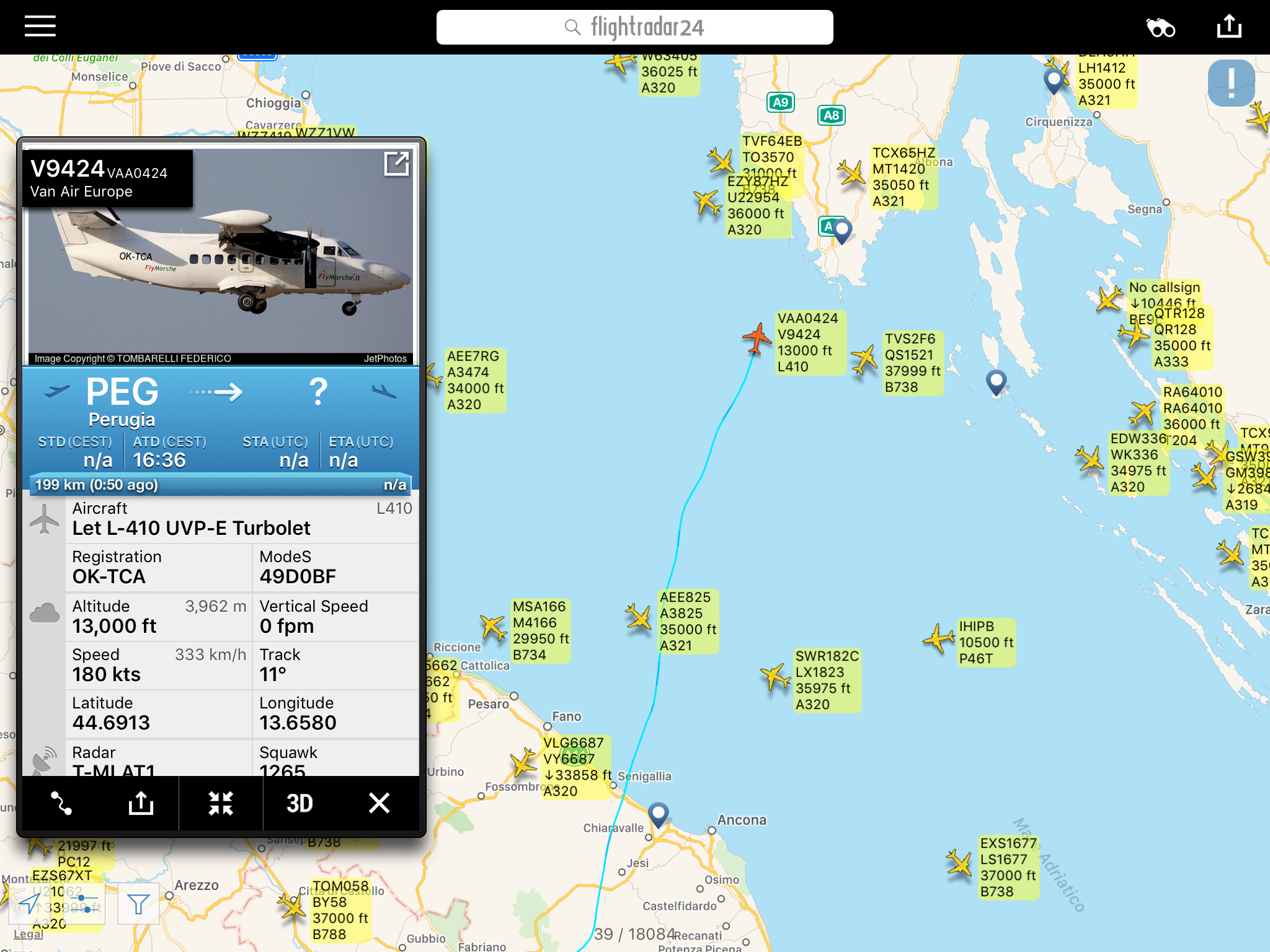 Il Let410 OK-TCA della Van Air Europe, volo VAA424 e’ in rotta verso #Lubiana, da dove e’ partito stamani.